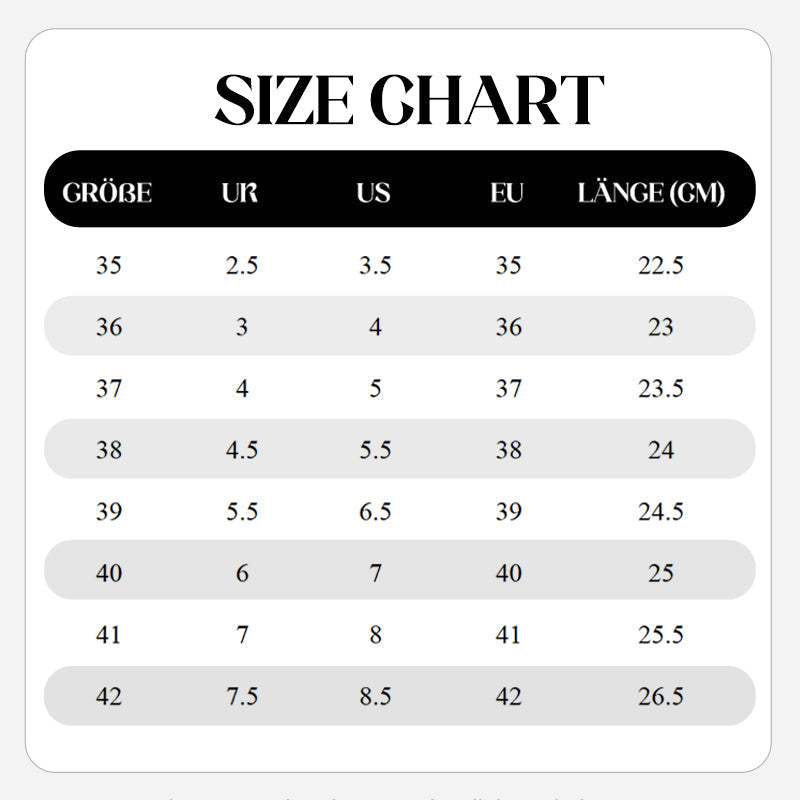 Größentabelle für Damenschuhe