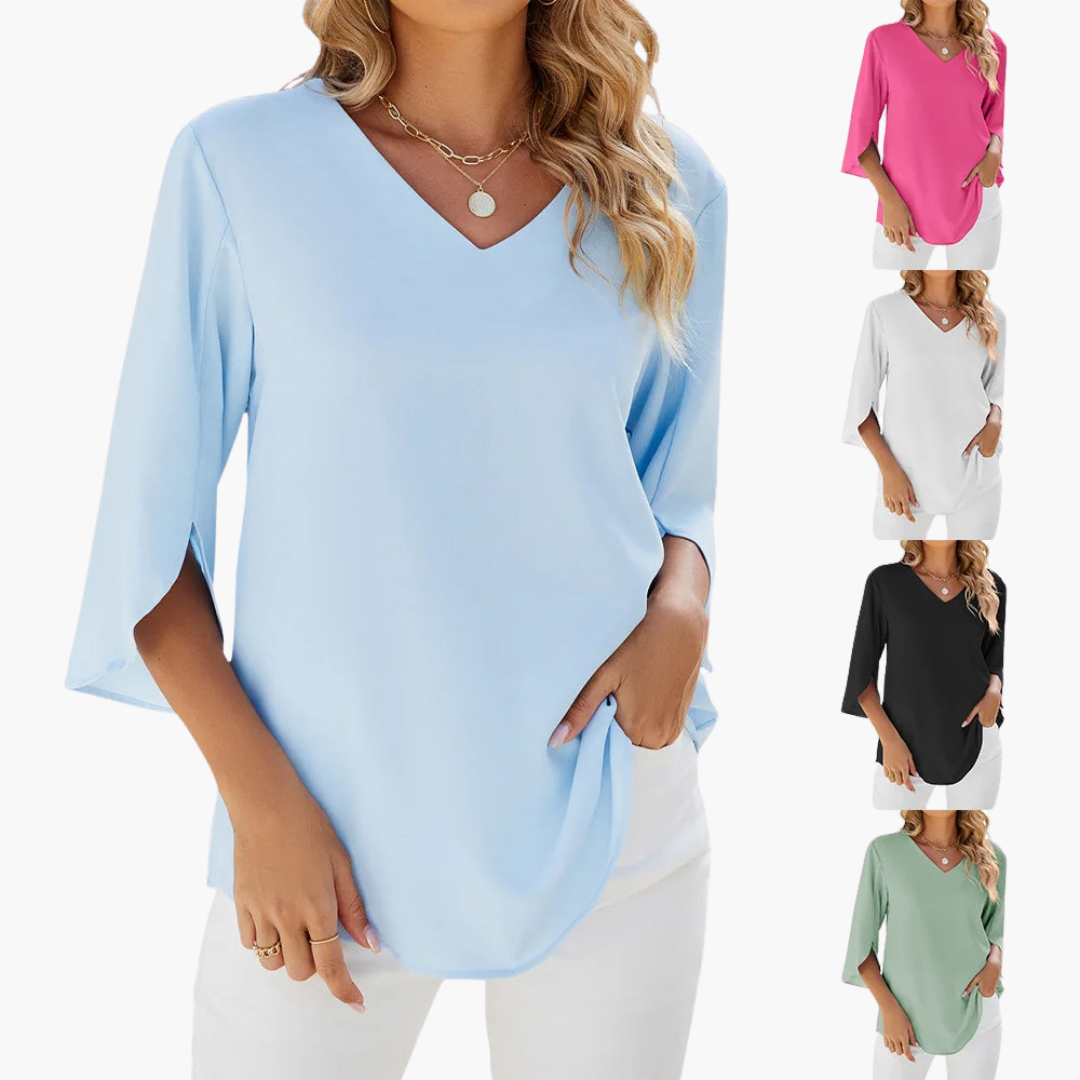 Bluse Damen - Lockeres V-Ausschnitt Oberteil mit 3/4-Ärmeln