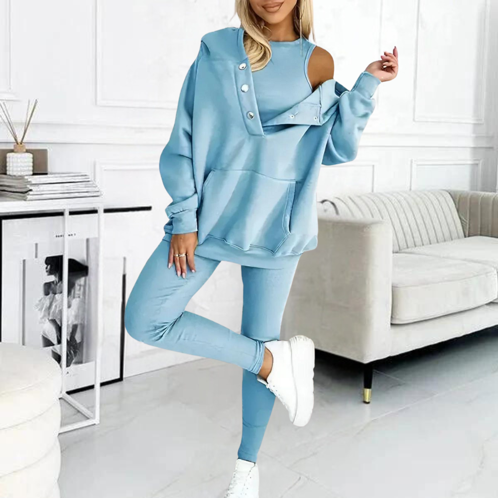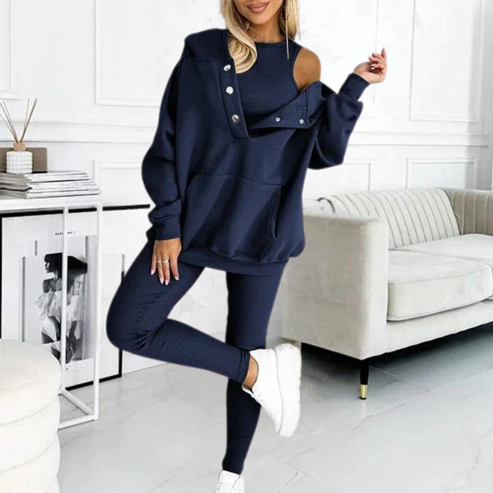 Dieses dreiteilige Set ist die perfekte Wahl für jeden Tag und bietet eine hervorragende Option für einen bequemen und dennoch stilvollen Look.