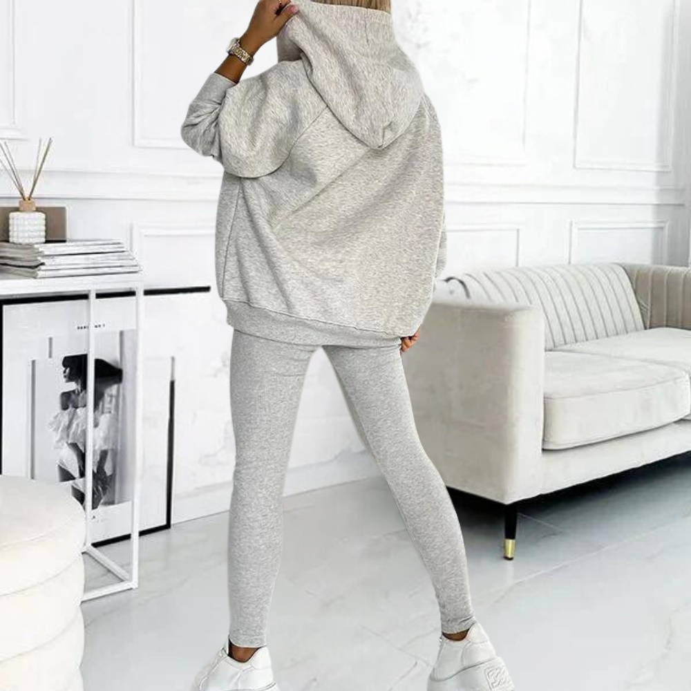 - Geripptes Oberteil, übergroßer Kapuzenpullover und gerippte Leggings bieten Vielseitigkeit und Stil.
