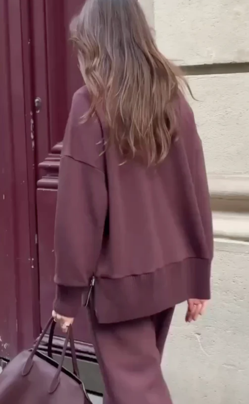 - Schmeichelhaft für alle Formen: Der Oversized-Pullover und die Hose mit weitem Bein sind so konzipiert, dass sie schön drapiert werden können, ohne an Stil einzubüßen.