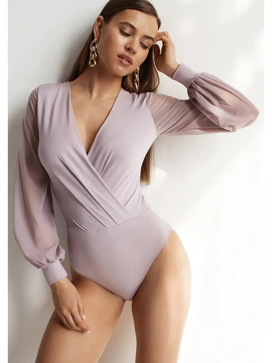 Setzen Sie auf einen stilvollen Auftritt und machen Sie den Damen Body mit transparenten langen Ärmeln und Wickeldesign von Heidi-Mode zu einem unverzichtbaren Teil Ihrer Garderobe!