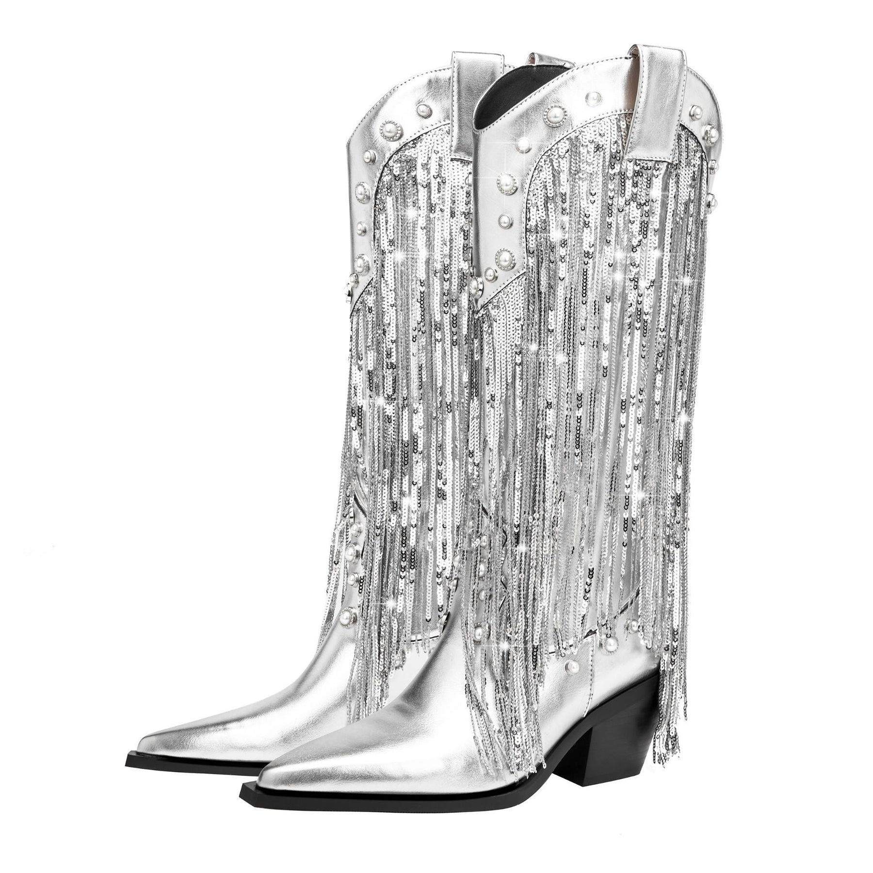 Verleihen Sie Ihrer Garderobe mit diesen Bold & Boho Cowboystiefeln für Damen einen ausdrucksstarken Touch – Western-Wurzeln treffen auf Bohème-Flair. Mit schimmernden Metallic-Tönen, fließenden Fransen und luxuriösen Verzierungen ziehen diese Stiefel überall die Blicke auf sich. Ob beim Tanzen auf einem Festival oder beim Aufpeppen eines lässigen Looks – sie verleihen jeder Bewegung Persönlichkeit, Power und Eleganz.