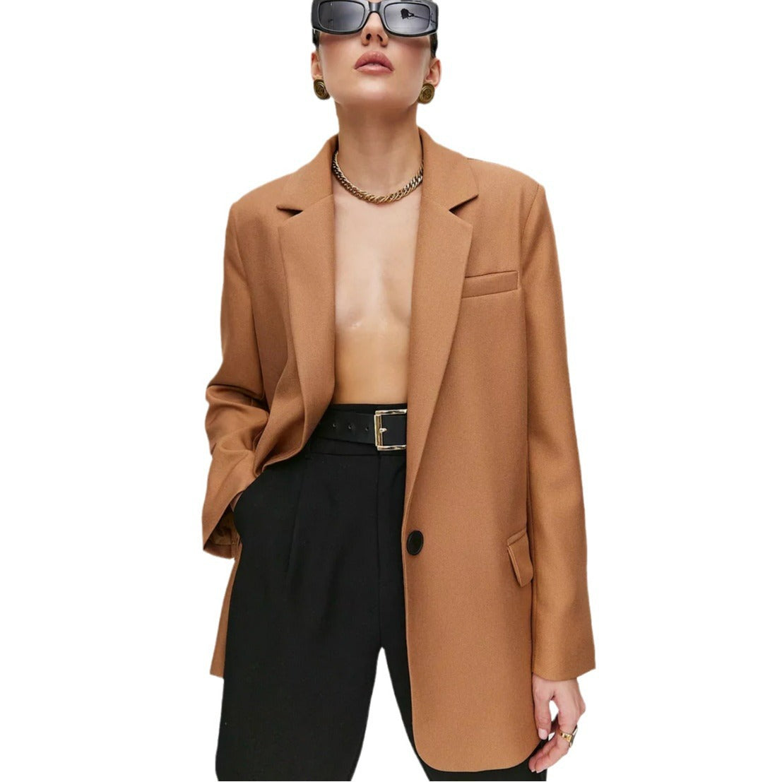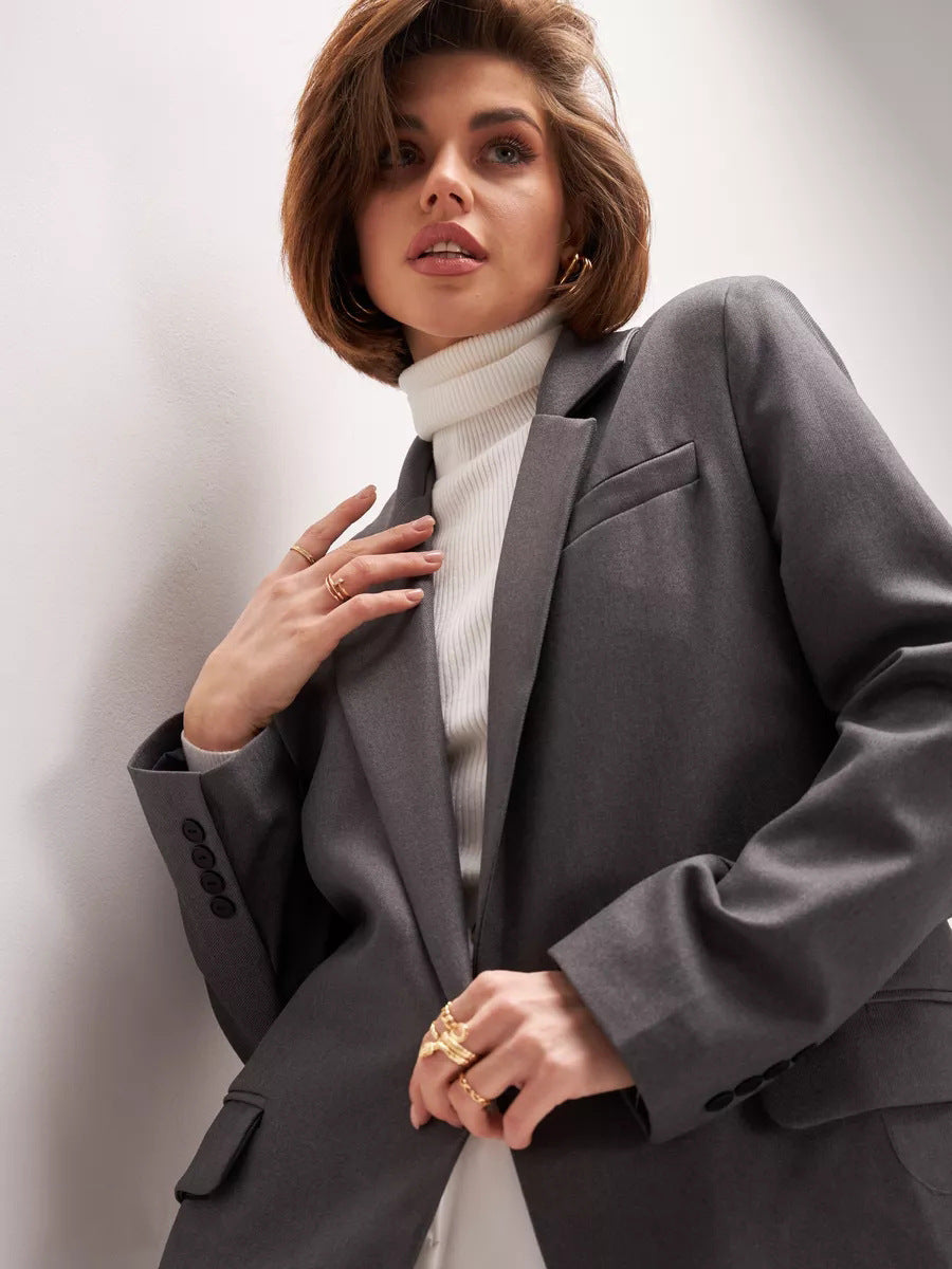 Damen eleganter Oversized Blazer mit feiner Textur und minimalistischer Knopfleiste Heidi-Mode