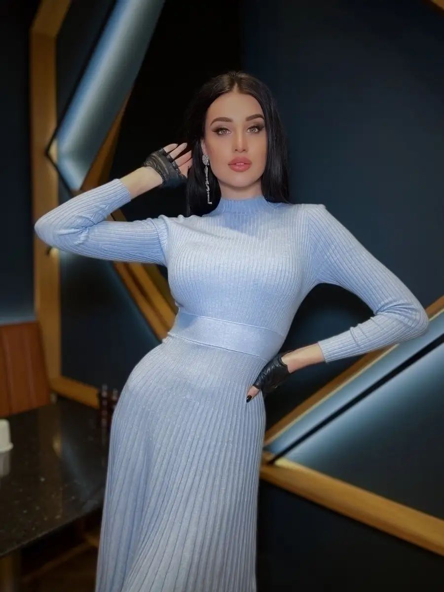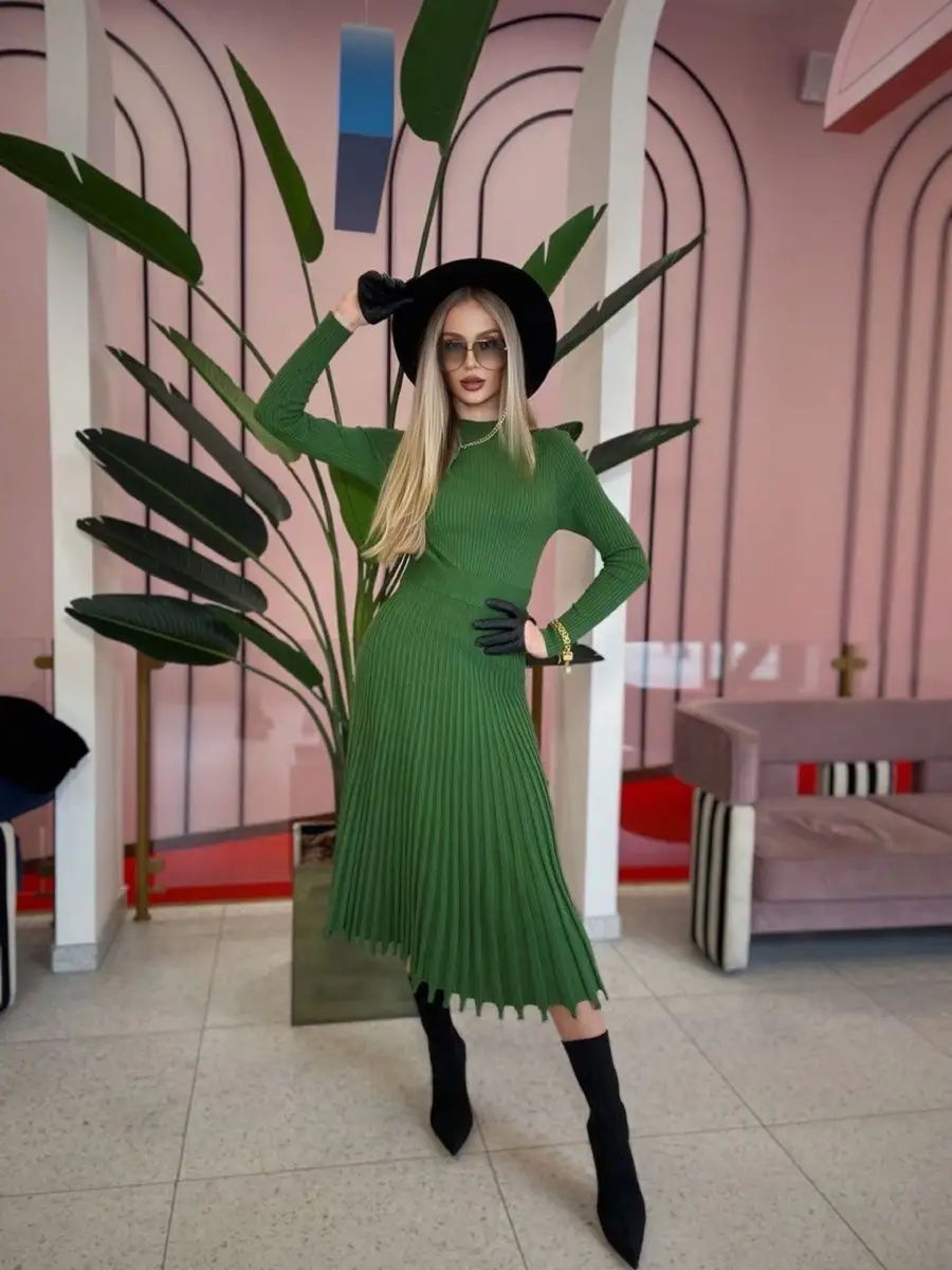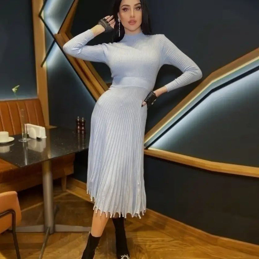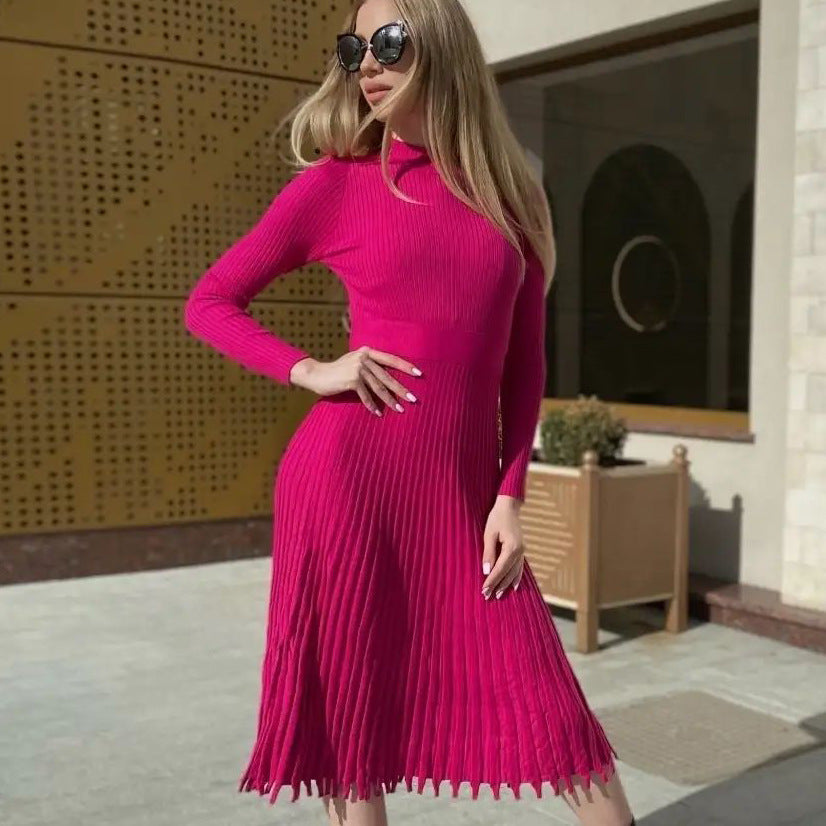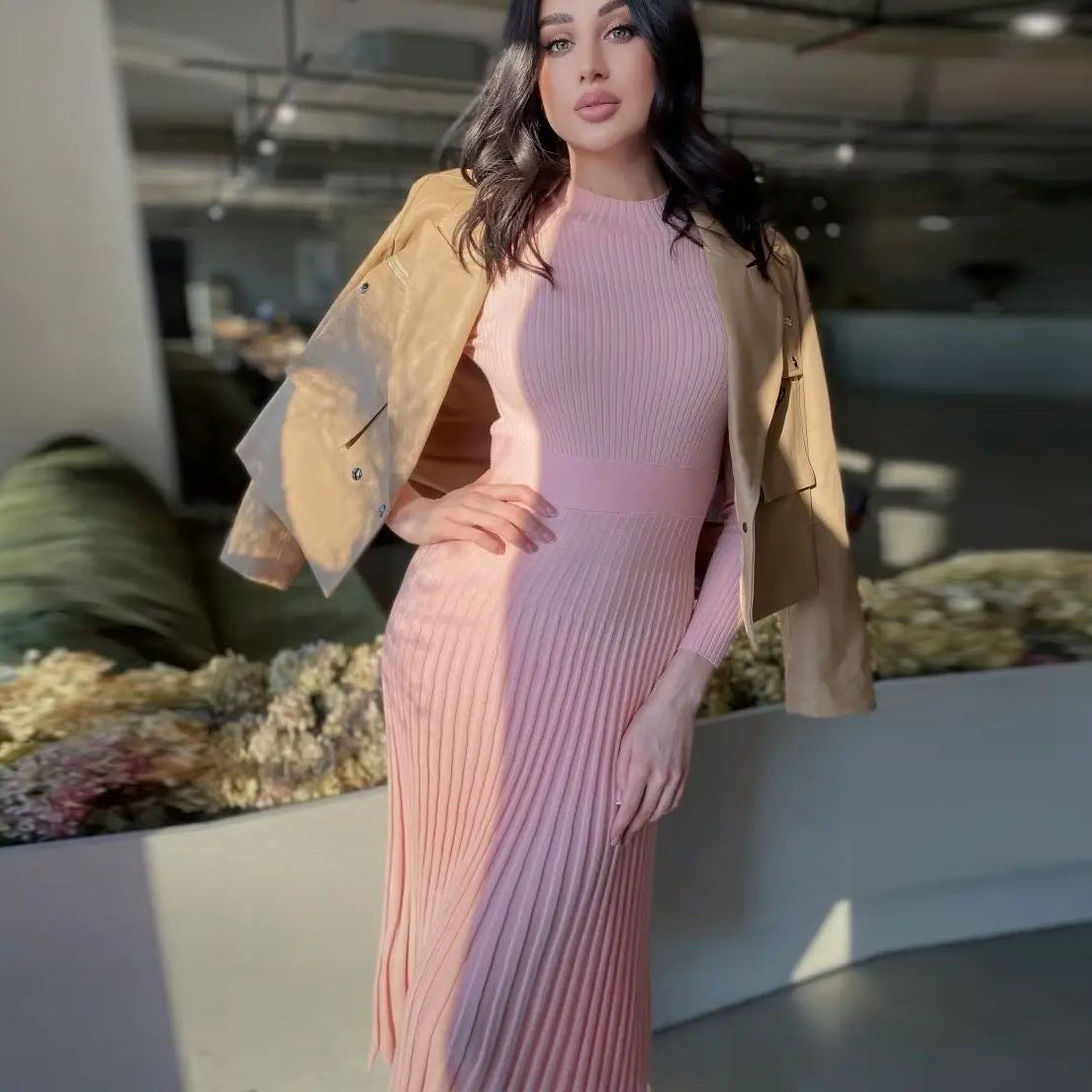 Erleben Sie stilvolle Eleganz mit unserem Damen eleganten Strickkleid. Dieses Kleid präsentiert sich in einem raffinierten Design mit feiner Rippstruktur, das der Silhouette schmeichelt und gleichzeitig Komfort und Bewegungsfreiheit bietet.