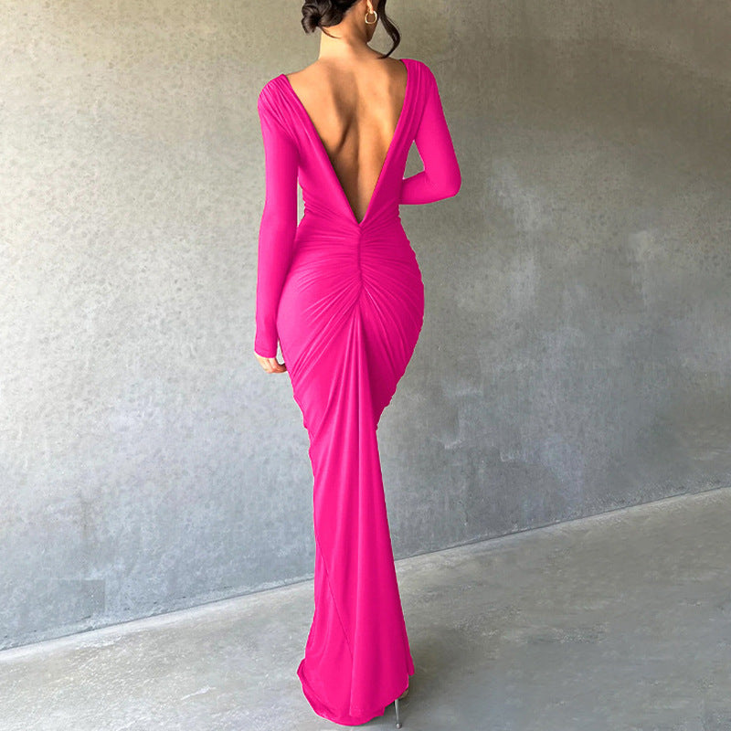 - Design: Das Kleid besticht durch einen tiefen V-Ausschnitt, der für einen verführerischen Look sorgt, während die eleganten Falten an der Taille eine schmeichelnde Silhouette kreieren.