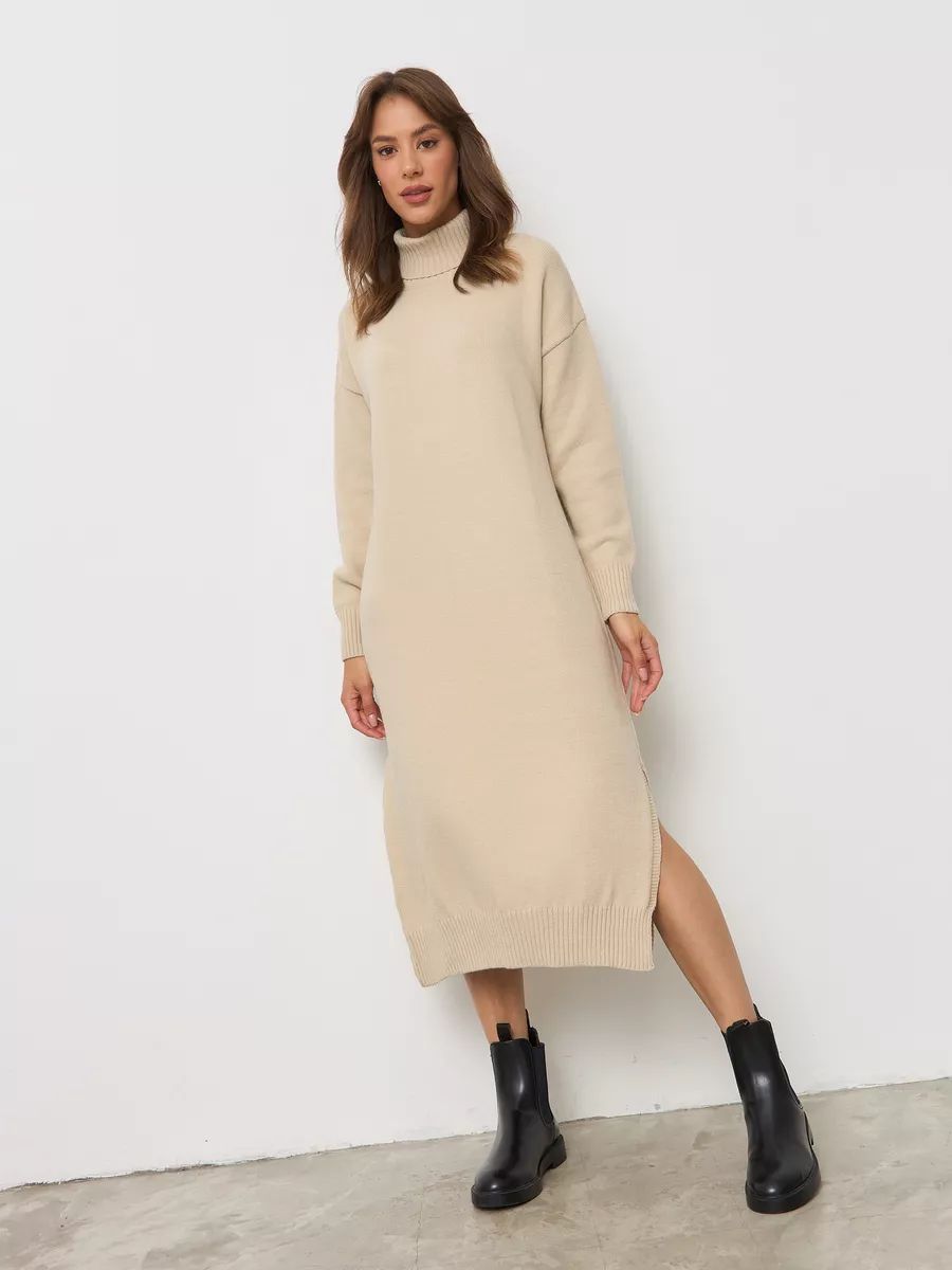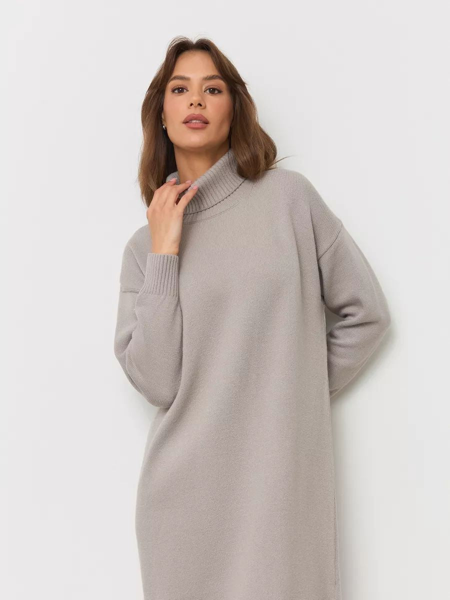 Damen gemütliches Strickkleid mit hohem Rollkragen und seitlichem Schlitz Heidi-Mode