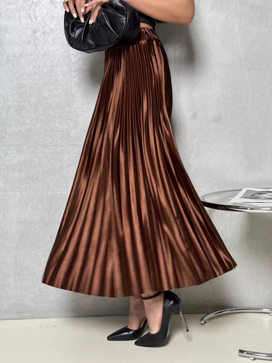 Damen Kombination aus schulterfreiem Oberteil und plissiertem Maxirock Heidi-Mode