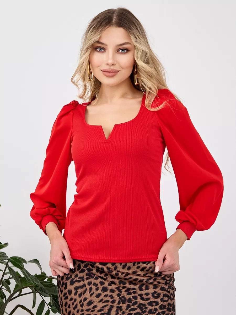 - Voluminöse Ärmel: Die armweiten Puffärmel fügen eine modische Note hinzu und machen das Oberteil zu einem echten Hingucker.