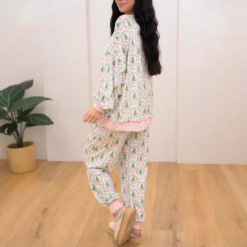 • Design: Charmantes festliches Muster mit Weihnachtsbäumen und Schleifen, ideal für die Winterzeit.