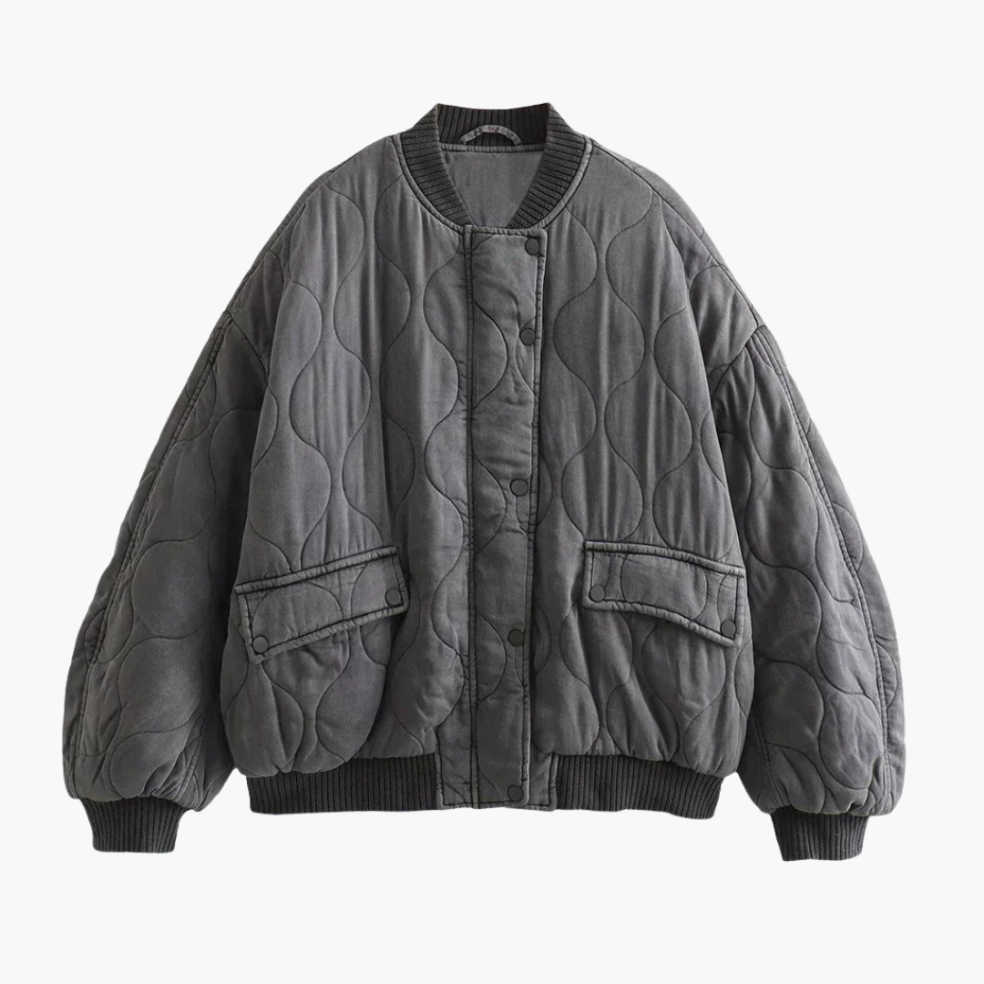Gestepptes Bomberjacke mit Druckknopfverschluss und Rippbündchen