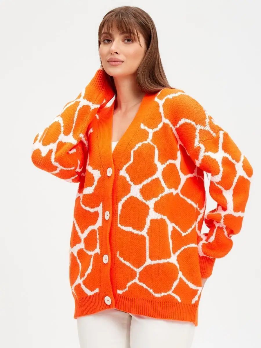 Entdecken Sie die stilvolle Damen Strickjacke von Heidi-Mode, die ideal für jede Gelegenheit ist. Mit ihrem einzigartigen grafischen Muster und der eleganten Silhouette ist sie ein echtes Must-have für modebewusste Frauen.