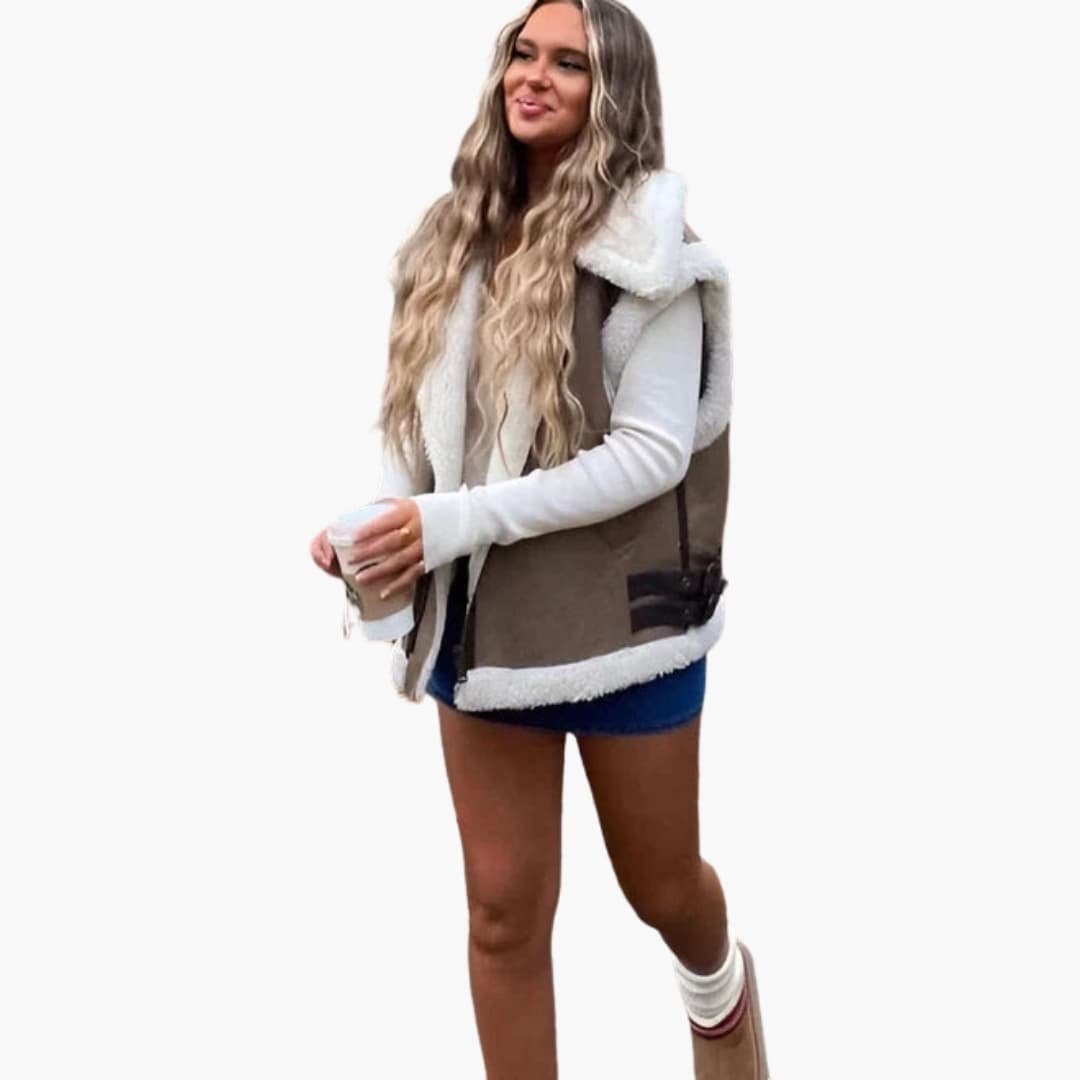 Damen Weste mit Reißverschluss und Kunstfellfutter