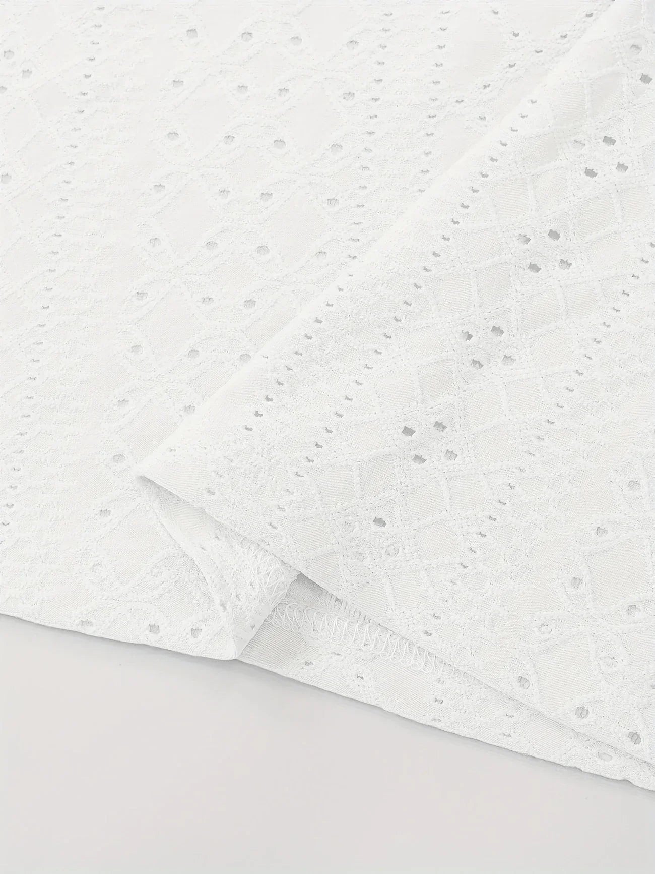 Stylischer und abgestimmter Schau: Das Despina-Set besteht aus einem passenden Neckholder-Top und Shorts mit Kordelzug und bietet so ein komplettes Outfit aus einer Hand. Die aufwendigen Lochstickereien verleihen dem Set einen Hauch von Eleganz und sorgen gleichzeitig für einen frischen und verspielten Schau. Dieses abgestimmte Ensemble ist perfekt für Freizeitaktivitäten und spart Ihnen Zeit beim Styling.