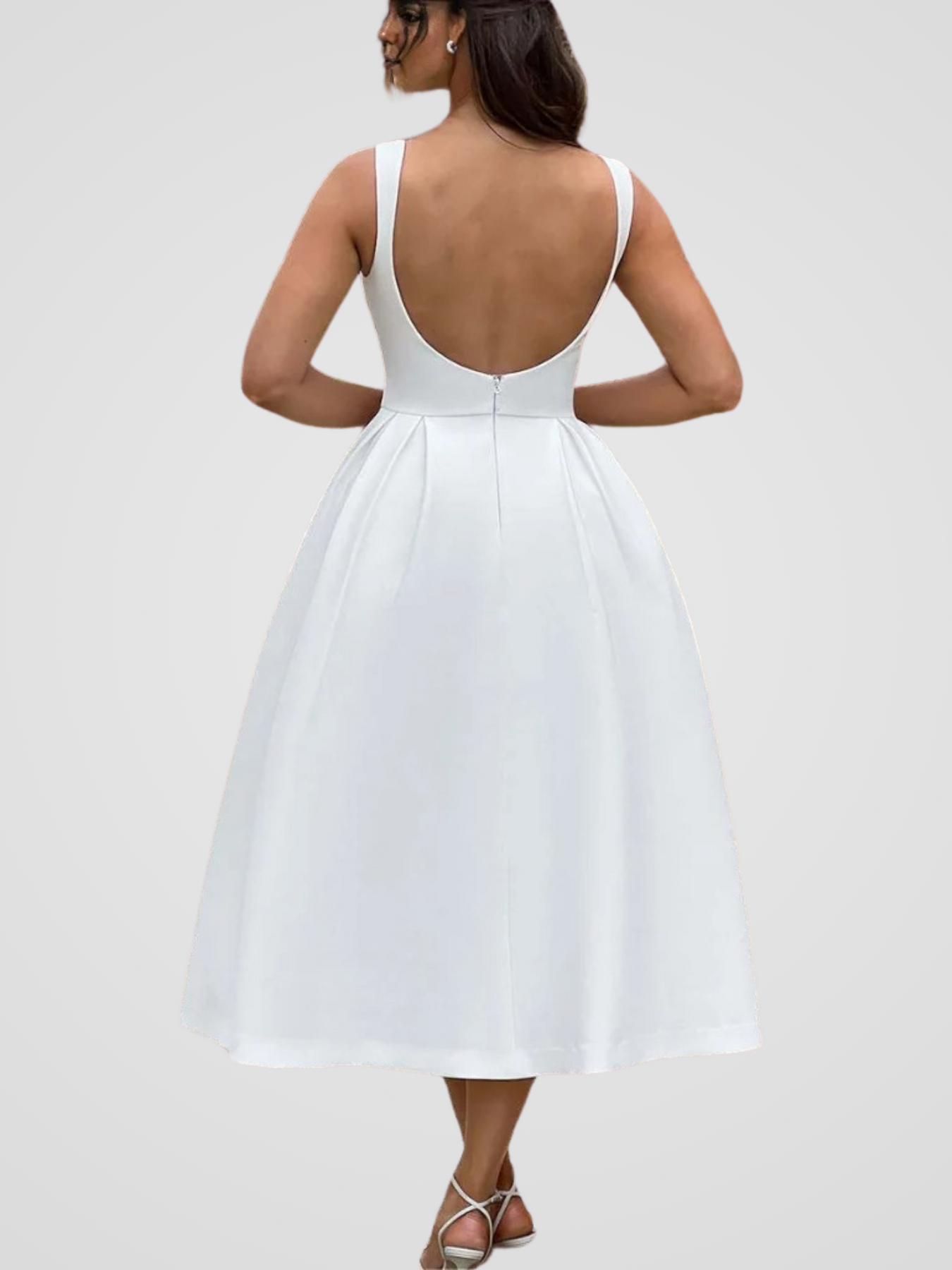 Erhältlich in hellblau und weiß, passt dieses stilvolle Midi Kleid zu jeder Gelegenheit. Kombiniere es mit High Heels und zarten Accessoires für einen glamourösen Look.