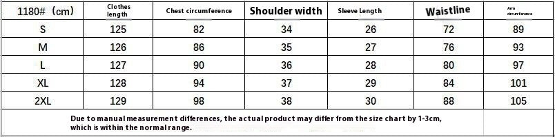 | Größe | Länge des Kleides (cm) | Brustumfang (cm) | Schulterbreite (cm) | Ärmellänge (cm) | Taille (cm) | Armumfang (cm) |