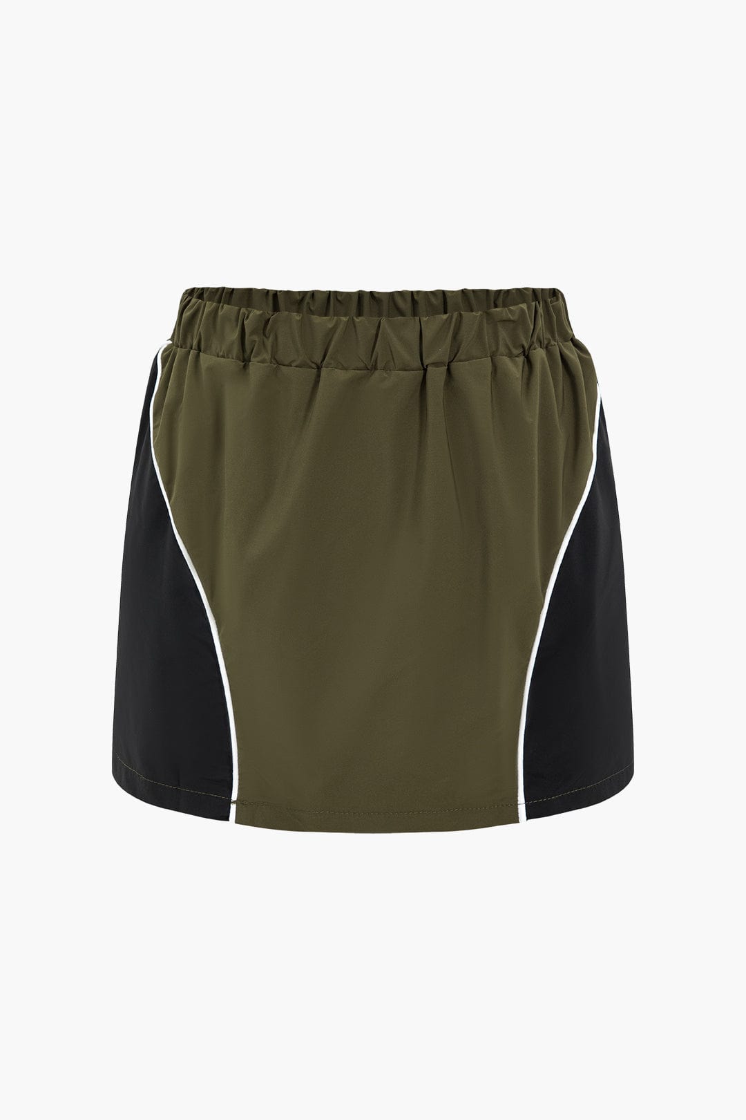 Das Frieda Zweiteiler-Set verbindet Athleisure mit modernem Design. Die stylische Kombination aus cropped Jacke mit Reißverschluss und einem sportlichen Minirock verleiht dir einen dynamischen Look. Die kontrastierenden Einsätze und die weißen Paspeln setzen markante Akzente, während das leichte Material für maximalen Tragekomfort sorgt. Perfekt für einen aktiven Lifestyle oder als trendiges Streetwear-Statement.