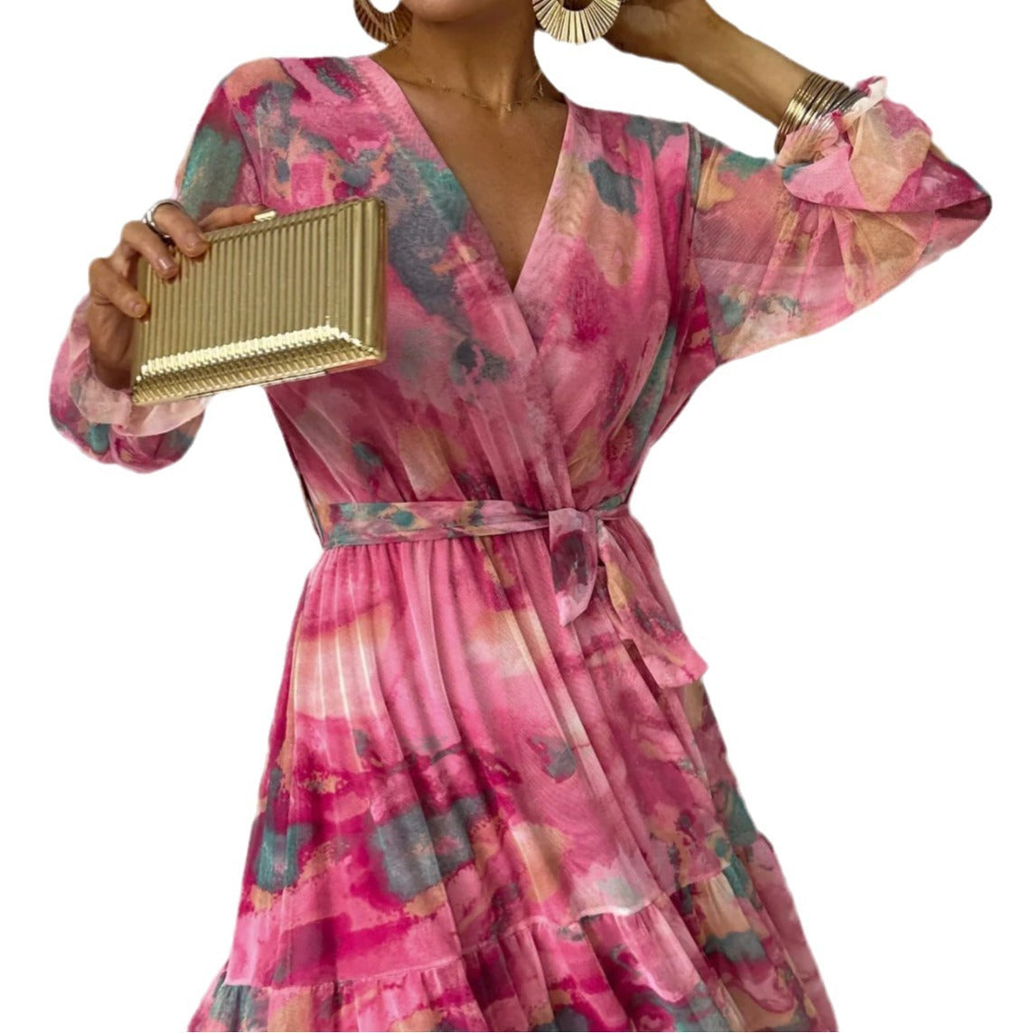 Hannah – Elegantes Chiffon-Kleid mit großer Schwingung und Zugband-Details