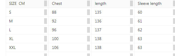 | Größe | Brust (cm) | Länge (cm) | Ärmel Länge (cm) |