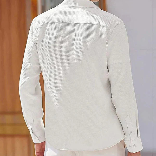 • Hochwertiger Waffelstrickstoff: Weich, atmungsaktiv und leicht – für ganztägigen Komfort und eine moderne, strukturierte Optik.
