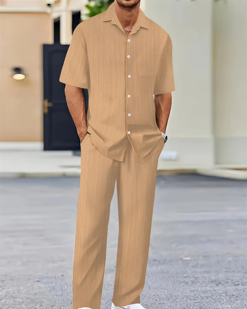 Herren Freizeit-Zweiteiler mit Kurzarm-Hemd und bequemer Hose
