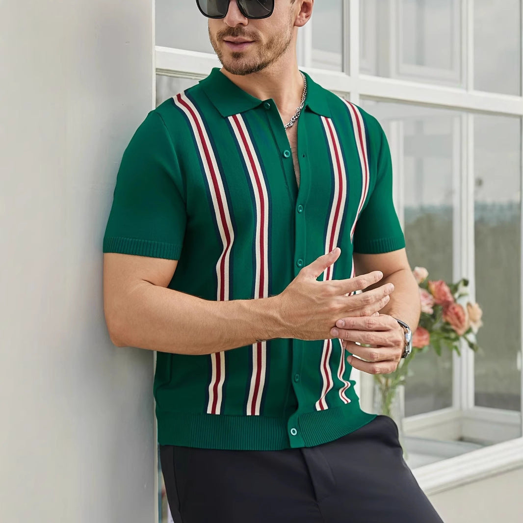 Entdecken Sie das Herren kurzärmlige modische Hemd mit Streifen von Aliams, das ideal für stilbewusste Männer ist, die sowohl Komfort als auch Eleganz schätzen. Dieses Hemd kombiniert moderne Designelemente mit einem klassischen Schnitt und ist perfekt für jede Gelegenheit, sei es ein entspanntes Meeting oder ein Ausflug am Wochenende.