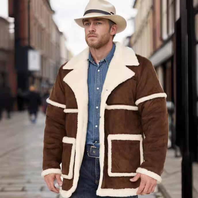 Herren Lammfell-gefütterte Bikerjacke mit breitem Kragen und praktischen Taschen Aliams