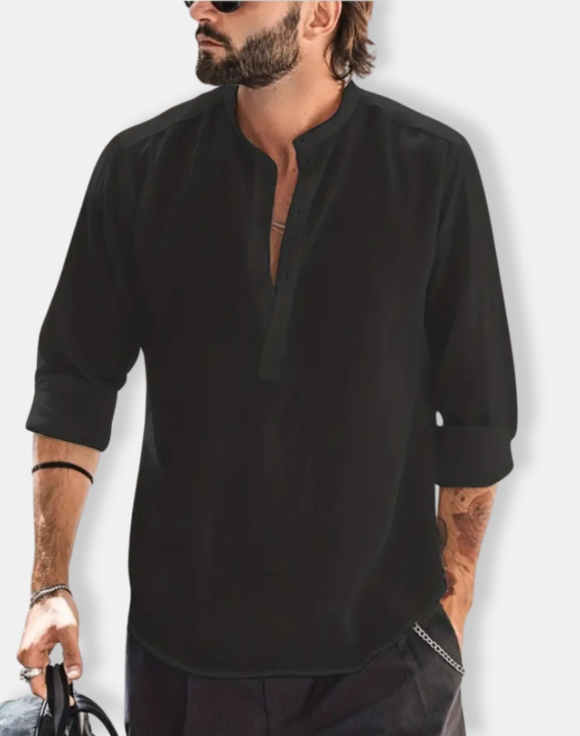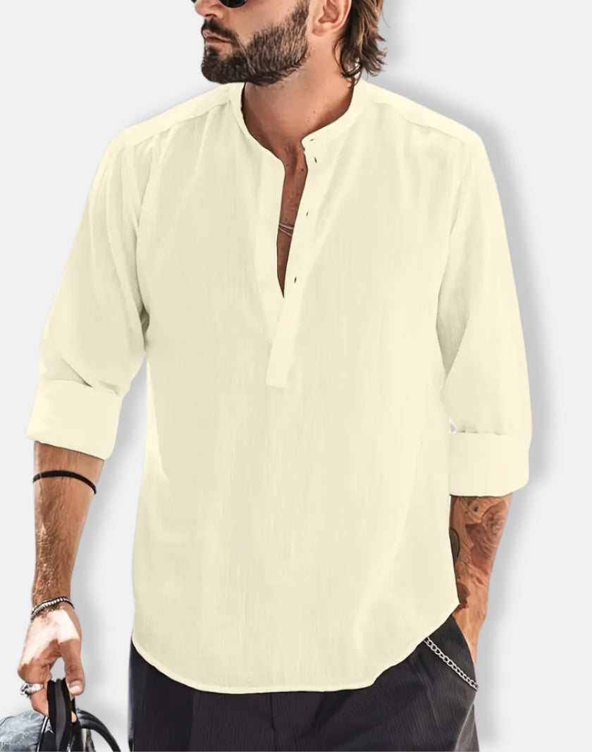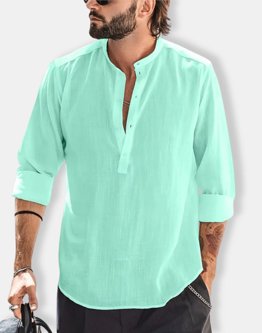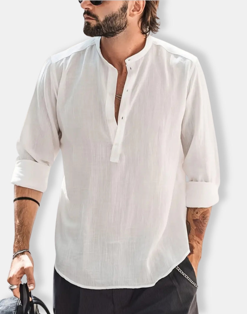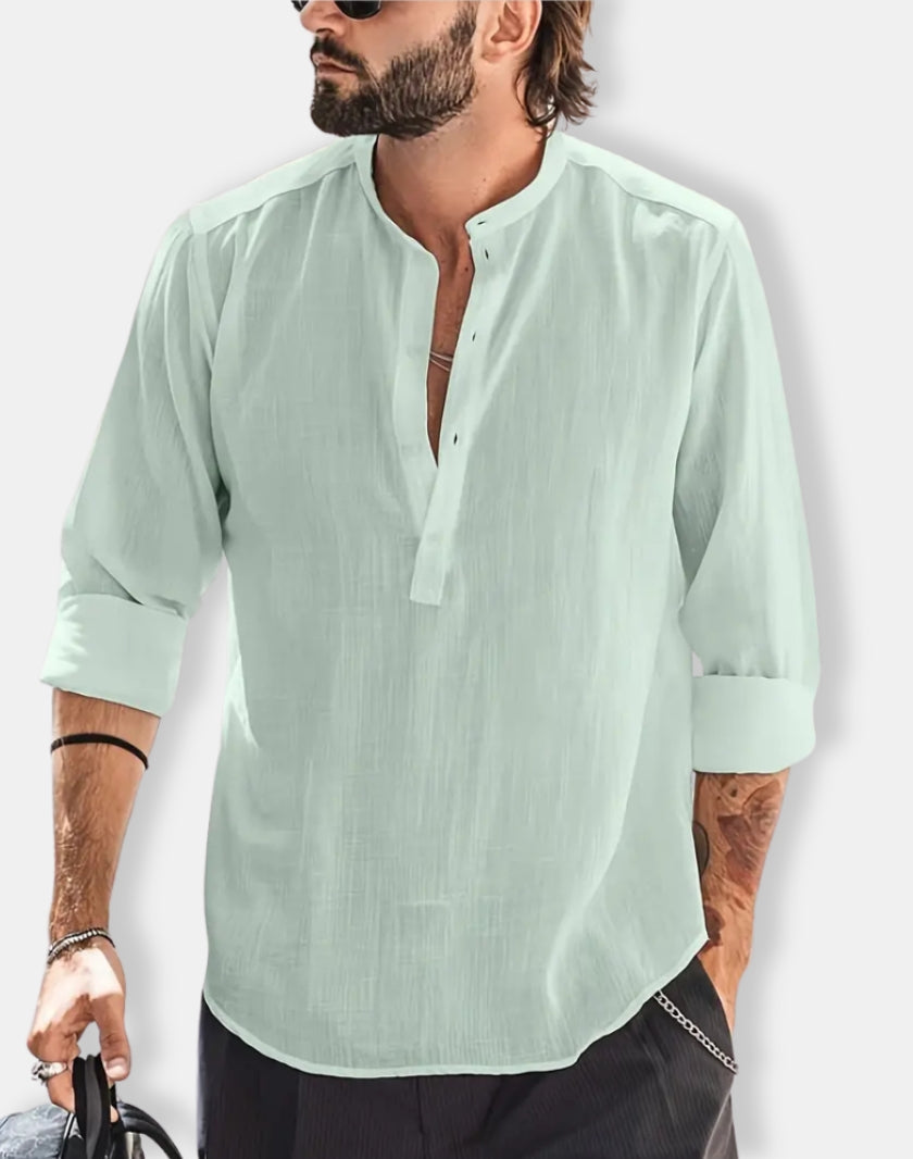 Dieses Herrenhemd vereint eine legere Passform mit atmungsaktivem Stoff, perfekt für warme Tage. Mit seinem schlichten Design lässt es sich vielseitig kombinieren – ob zu Shorts für den Strand oder zur Chino für einen entspannten Stadtbummel. Ein zuverlässiges Kleidungsstück für einen mühelosen Sommerlook.