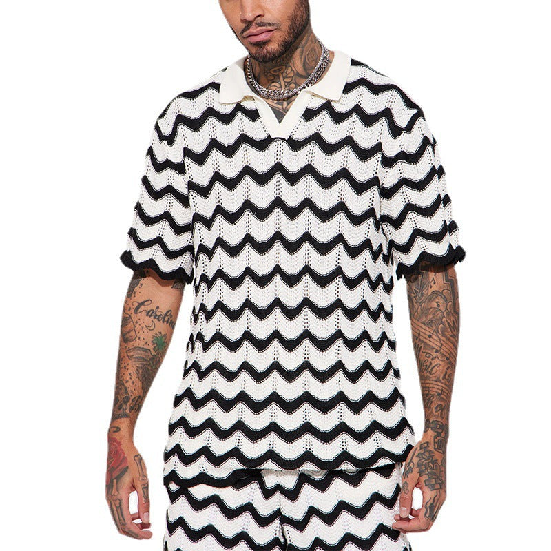 Herren lässiges Strickoberteil mit Wellenmuster Aliams