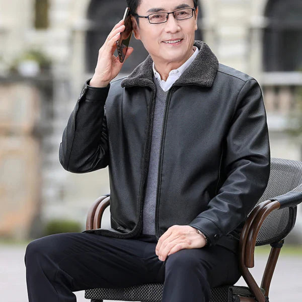 Bleiben Sie warm und stilvoll mit der Winter-Lederjacke mit Vlies-Futter von Herren Meister