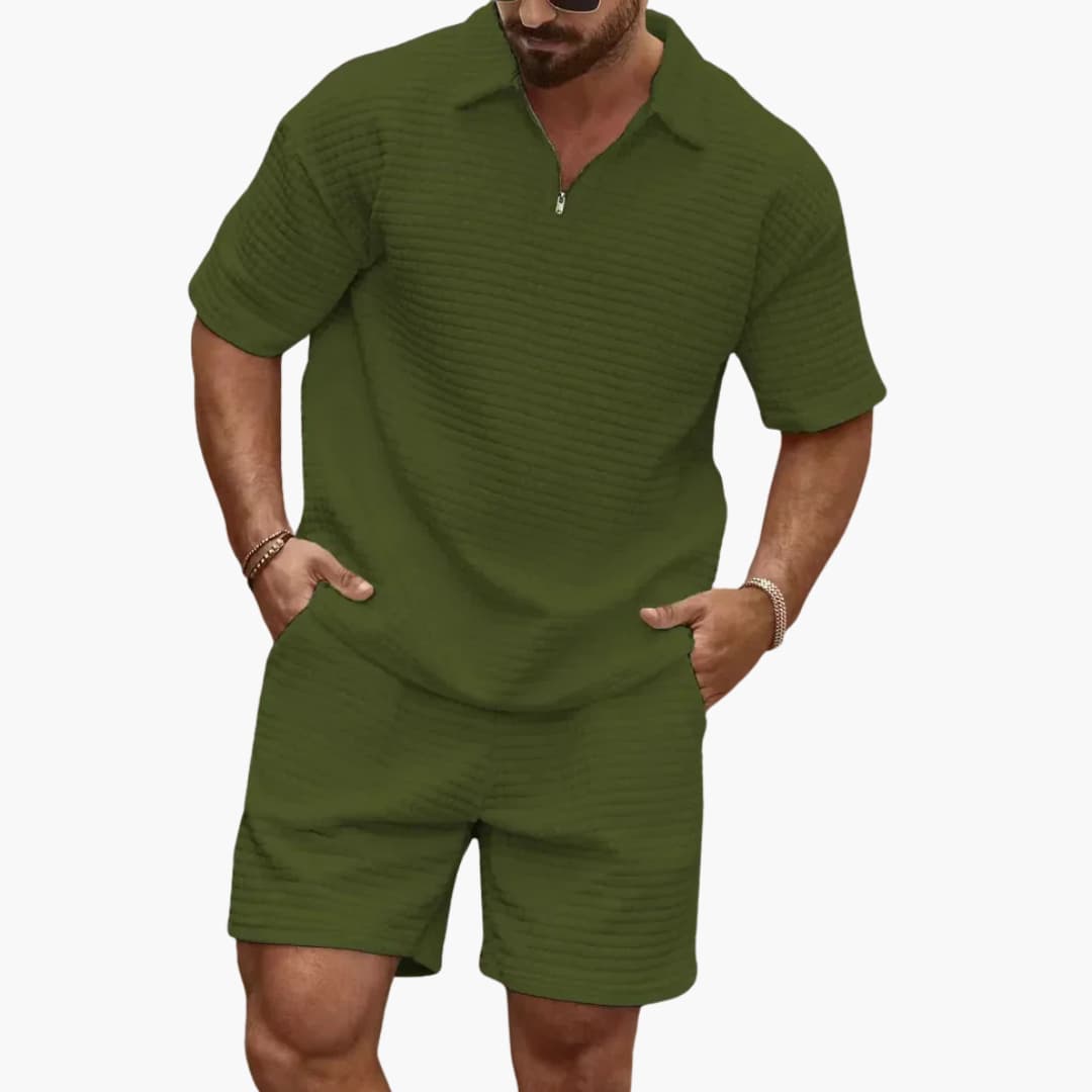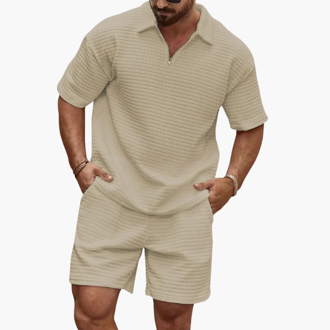 Herren Zweiteiler Set mit Steppstruktur und Halbzipp