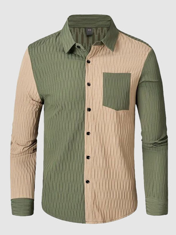 Steigern Sie Ihr Stilspiel mit unserem Männer Color Block Patchwork Oversized Casual Long Sleeve Shirt. Dieses Hemd verfügt über ein mutiges Farbblockdesign, das einer klassischen Silhouette einen modernen Twist verleiht. Hergestellt aus weichem, atmungsaktivem Material, sorgt es für Komfort und setzt gleichzeitig ein modisches Statement, ideal für jede legere Gelegenheit.