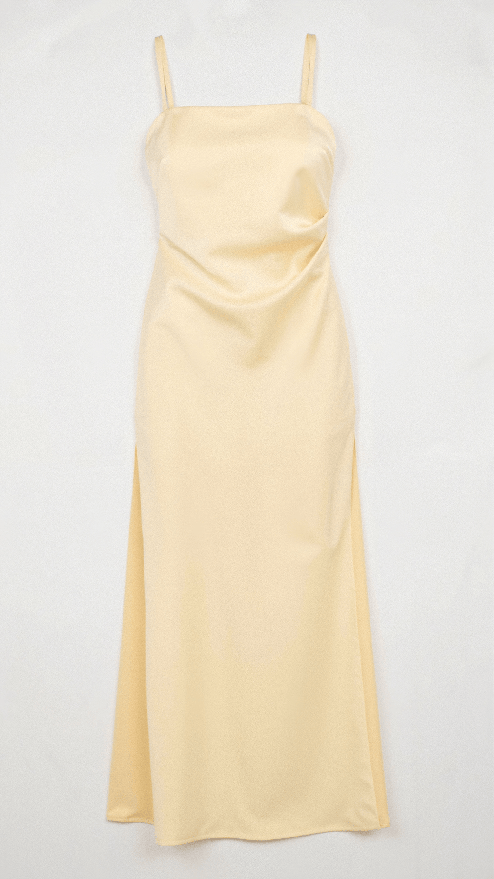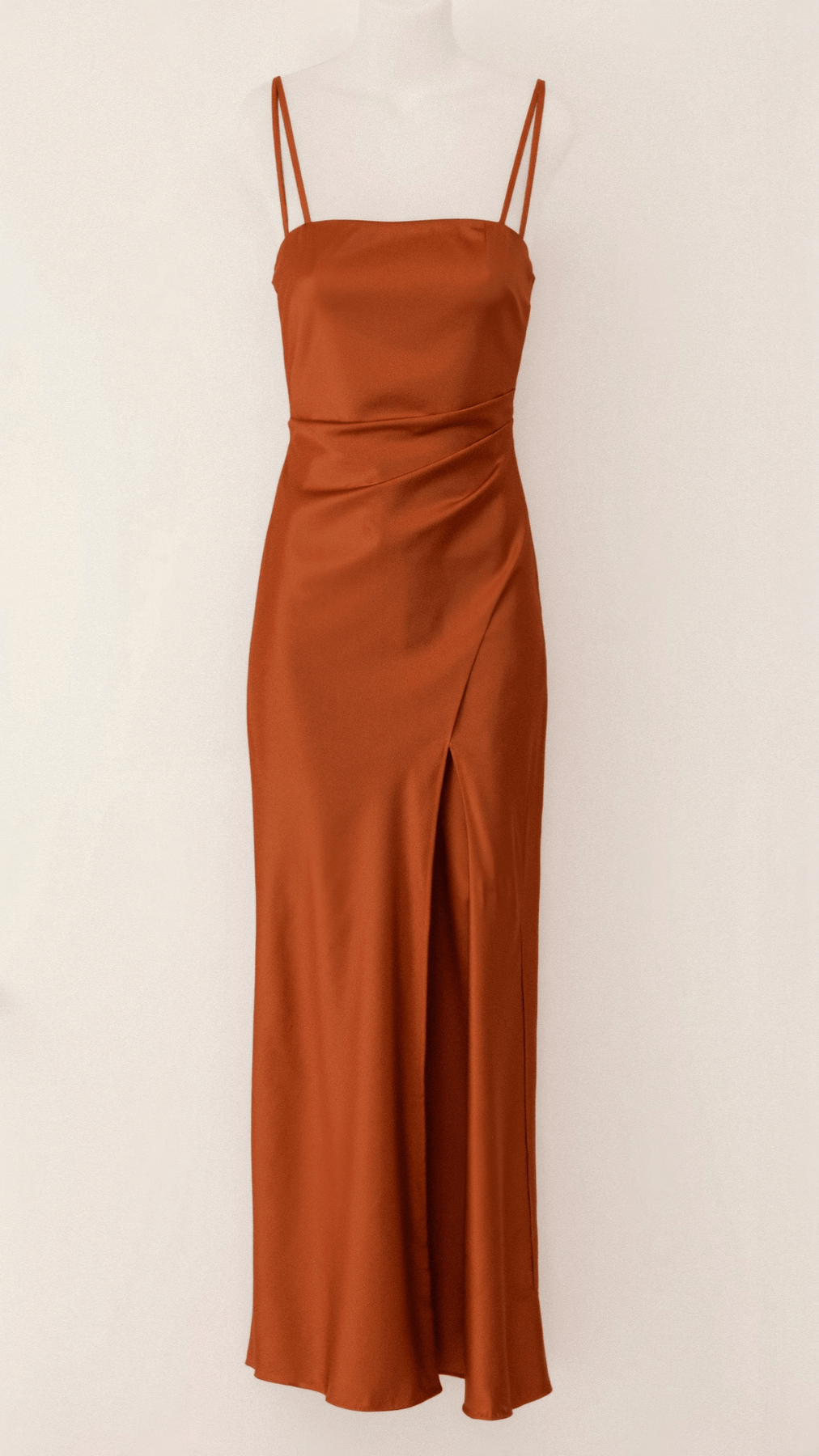 Das July Kleid besticht durch sein fließendes Design, feine Träger und einen hohen Schlitz – perfekt für stilvolle Auftritte.