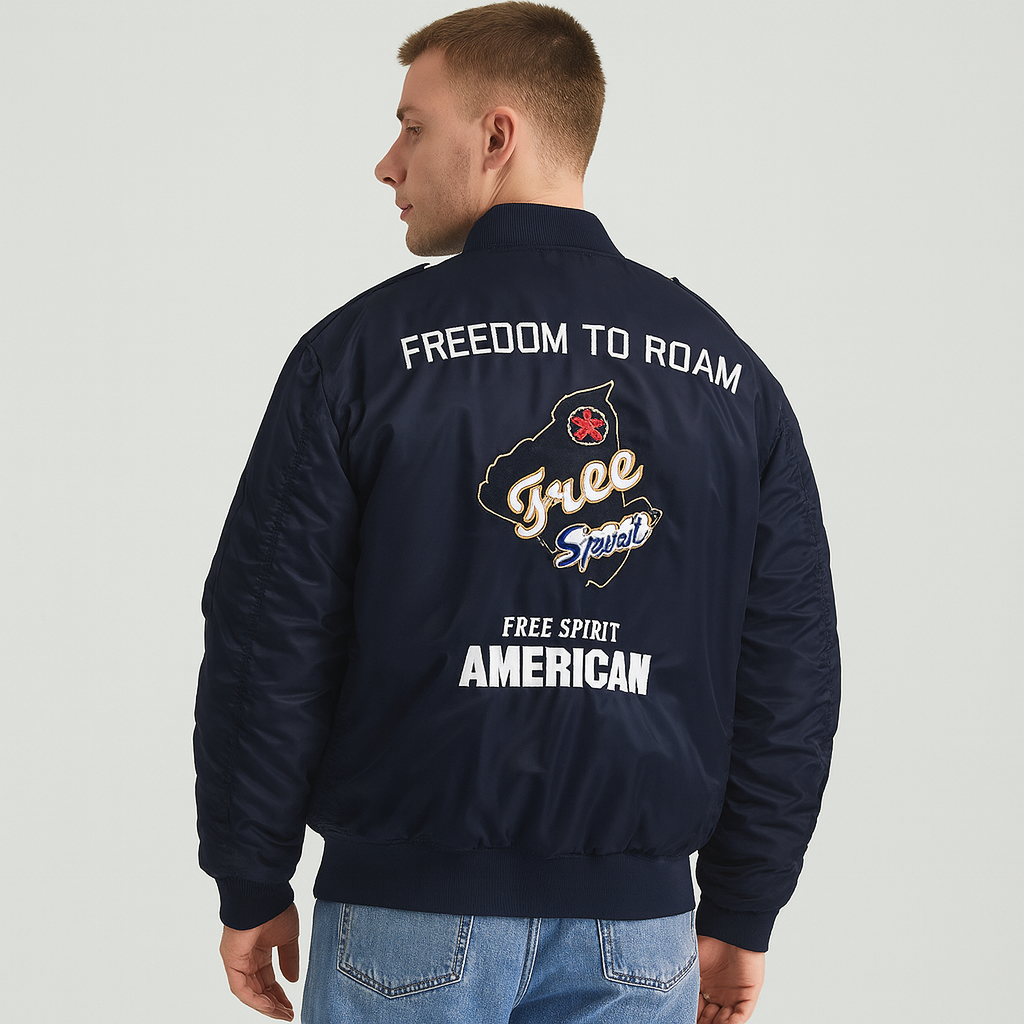 Diese lässige Bomberjacke vereint Komfort mit robuster Ausstrahlung. Das dicke Nylon und das gestickte Rückendetail machen sie perfekt für entspannte Outfits und Streetwear-Looks.