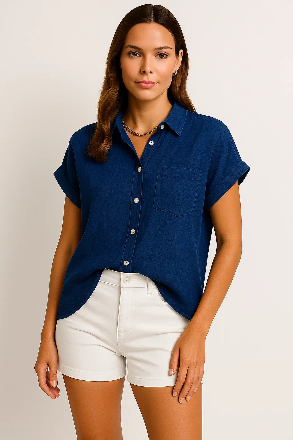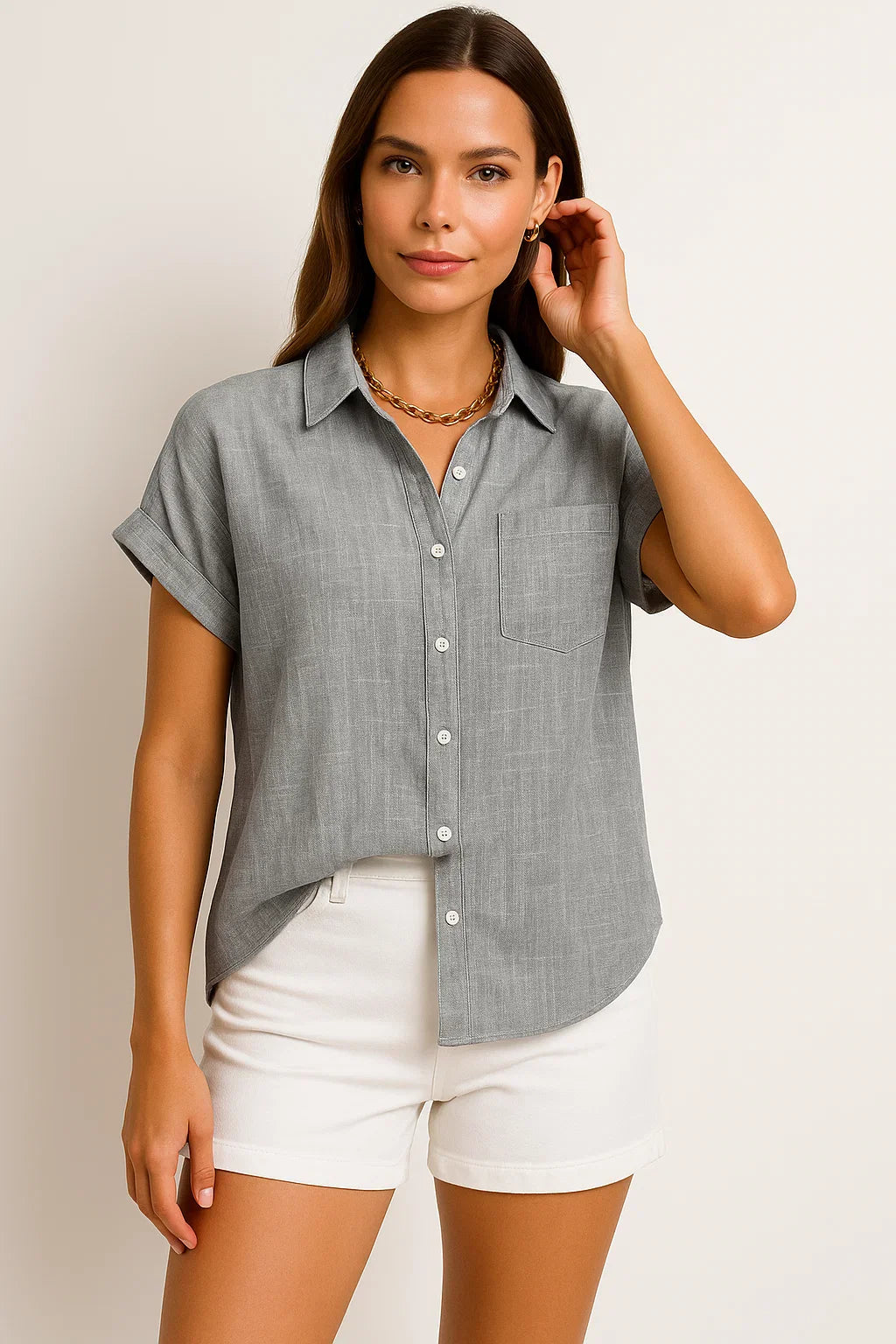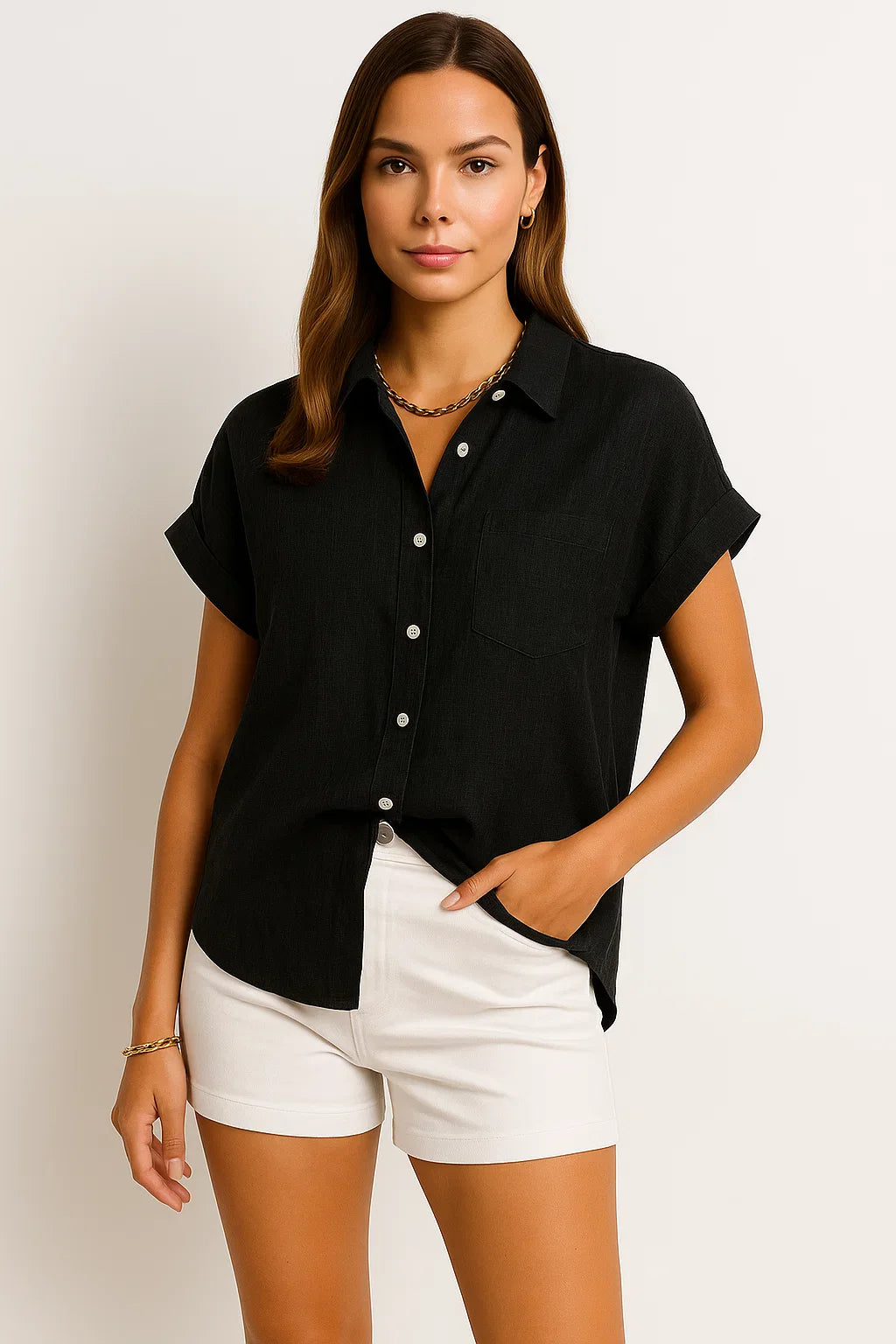 • Zeitloses Design: Die schlichte Optik mit kurzen Ärmeln macht diese Bluse zu einem stilvollen Begleiter für jede Jahreszeit.