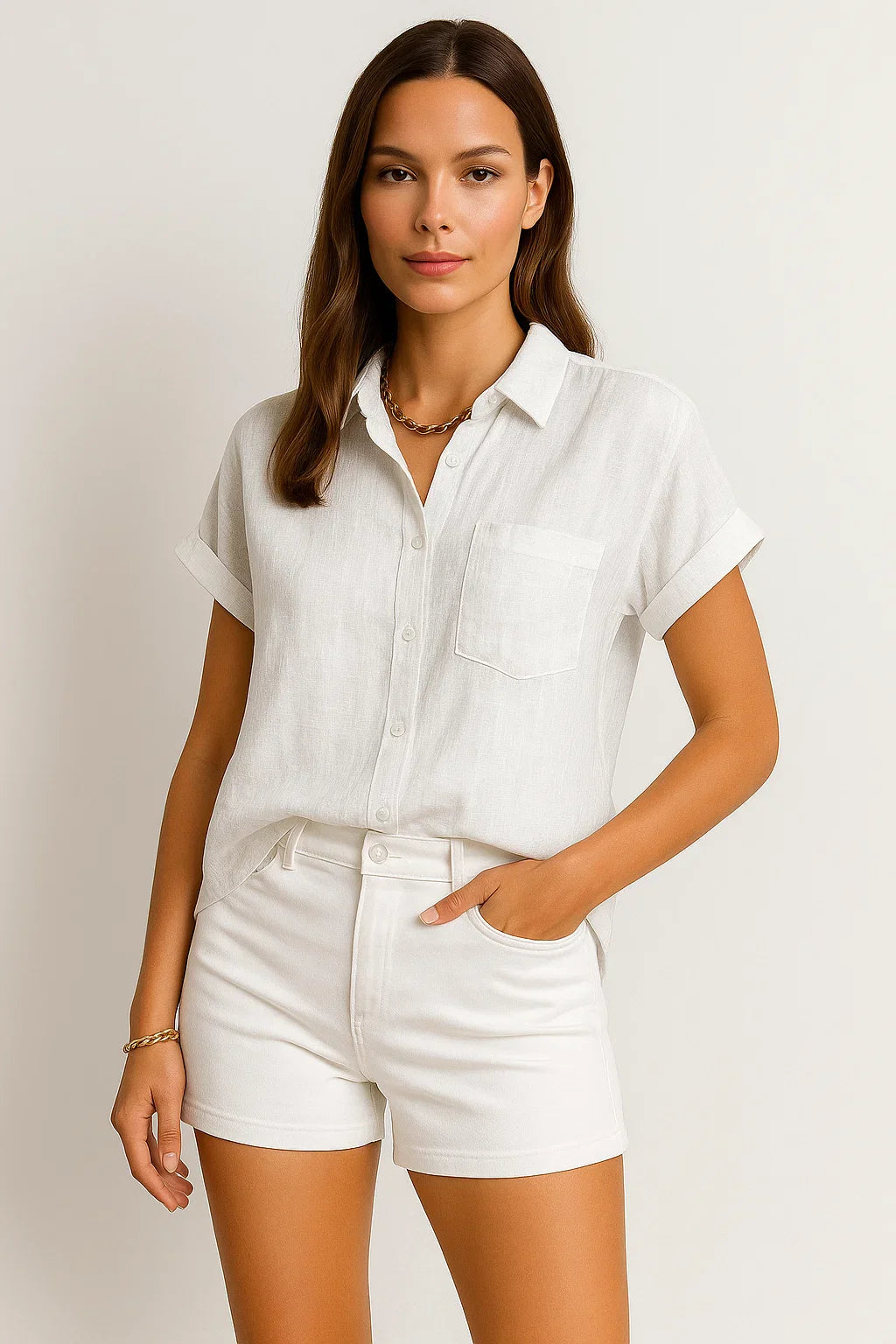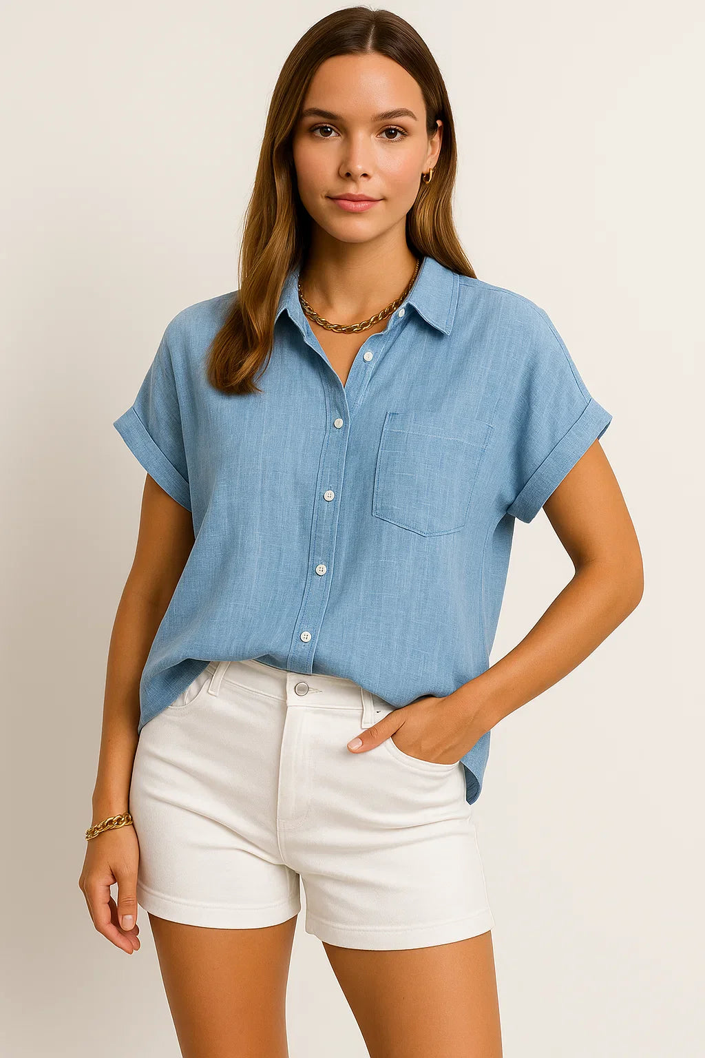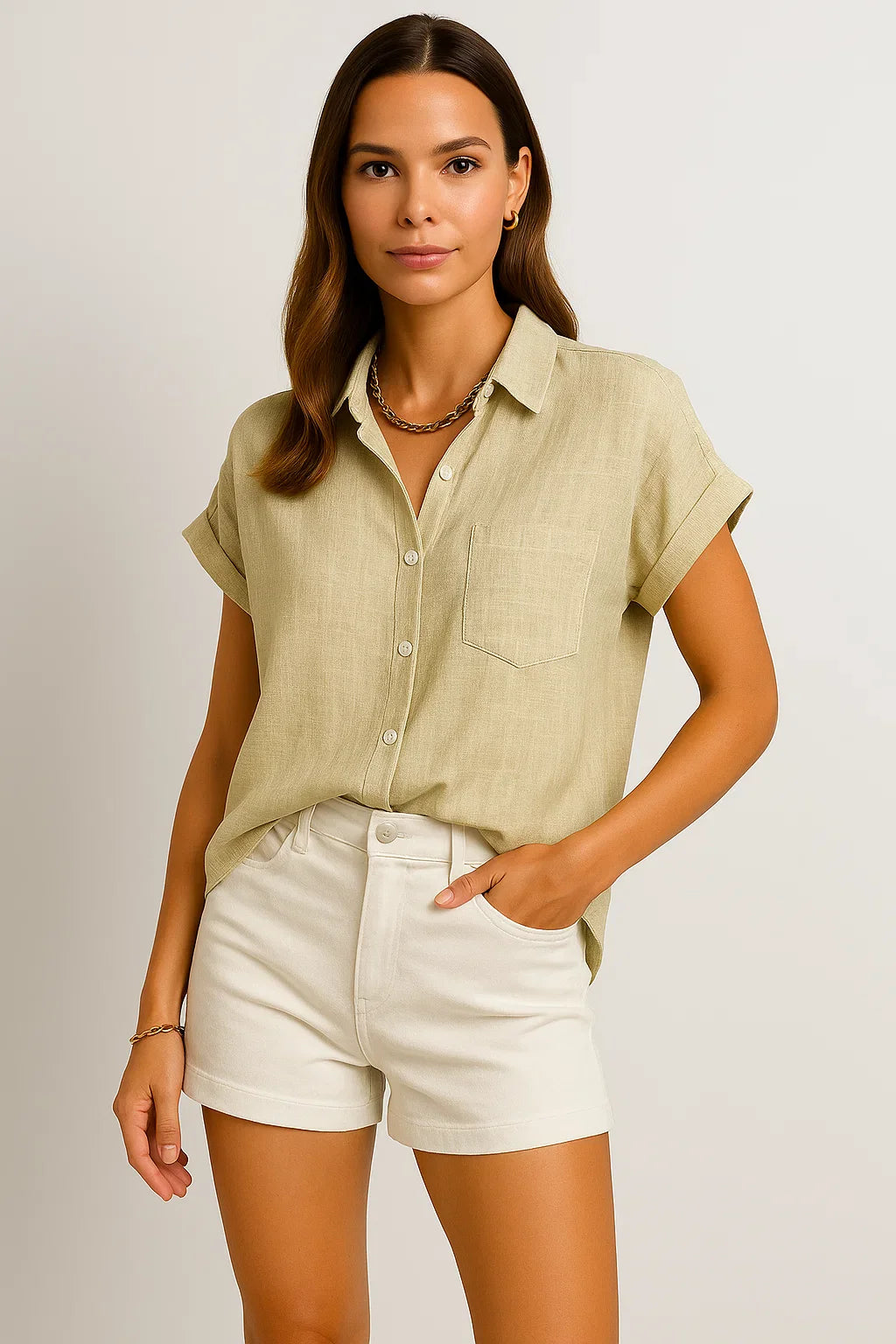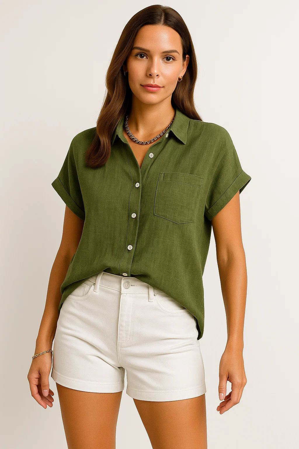 • Zeitloses Design: Die schlichte Optik mit kurzen Ärmeln macht diese Bluse zu einem stilvollen Begleiter für jede Jahreszeit.
