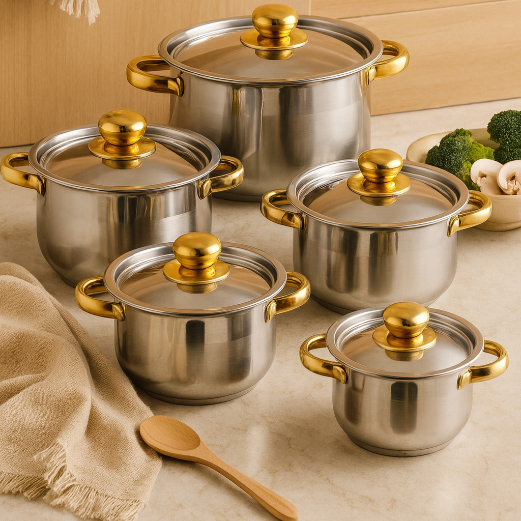 Komplettes 5-teiliges Kochgeschirr-Set – Enthält Suppentöpfe, Pfannen und Deckel für alle Ihre Kochbedürfnisse.