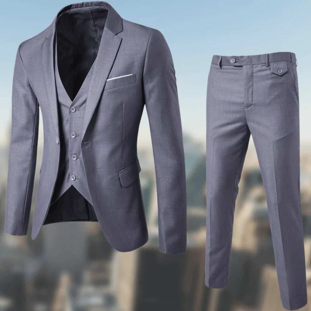 • Zeitloses Gestaltung: Klassischer 3-teiliger Anzug mit Weste, Jacke und Hose, die Eleganz und Stil ausstrahlen.