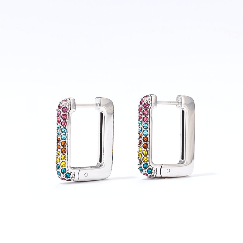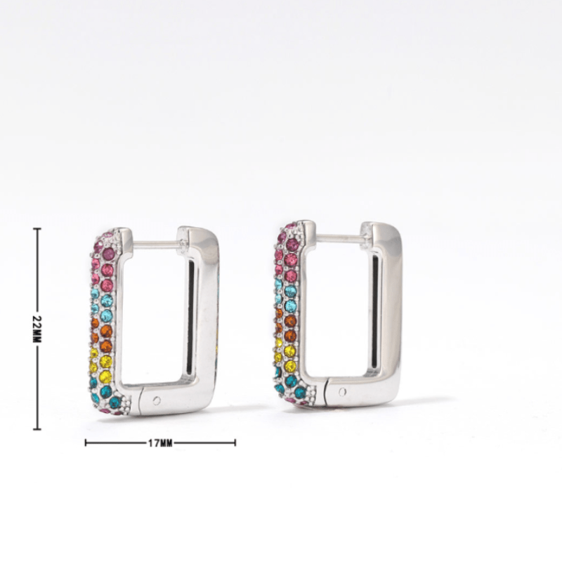 Die Micara Radiant Squares Ohrringe vereinen moderne Eleganz mit farbenfrohem Glanz durch ihr quadratisches Hoop-Design mit funkelnden Strasssteinen.