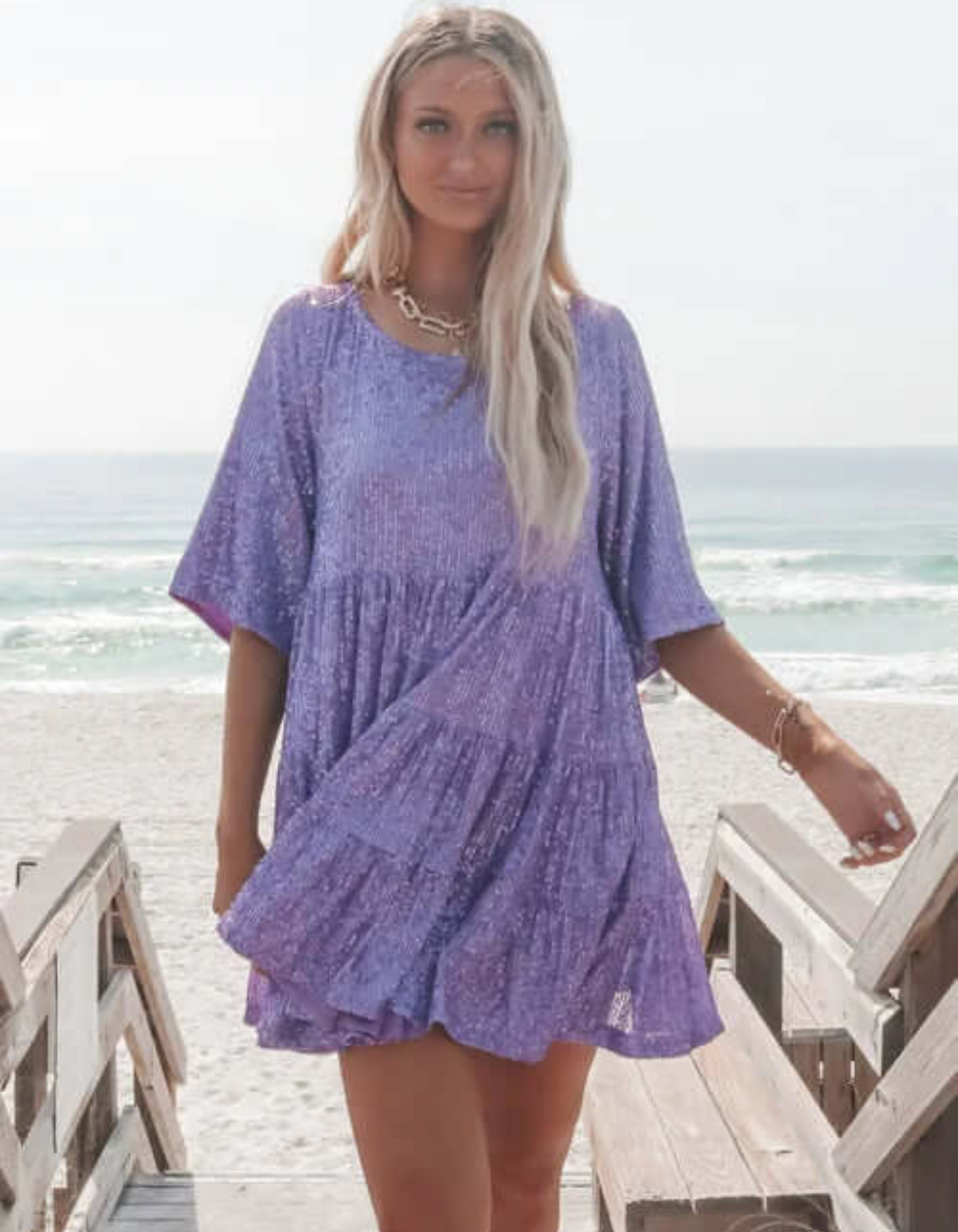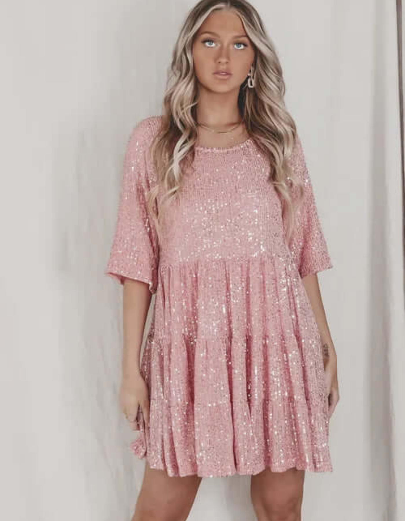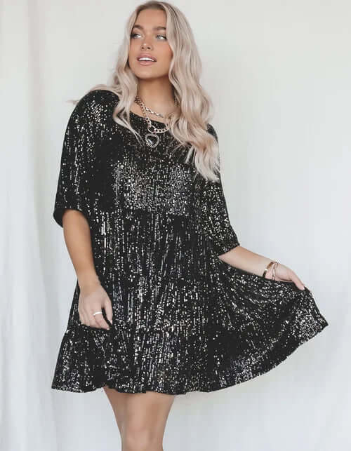 Atemberaubender Glanz: Mit schimmernden Pailletten verziert, sorgt dieses Kleid dafür, dass Sie bei jedem Anlass im Mittelpunkt stehen.