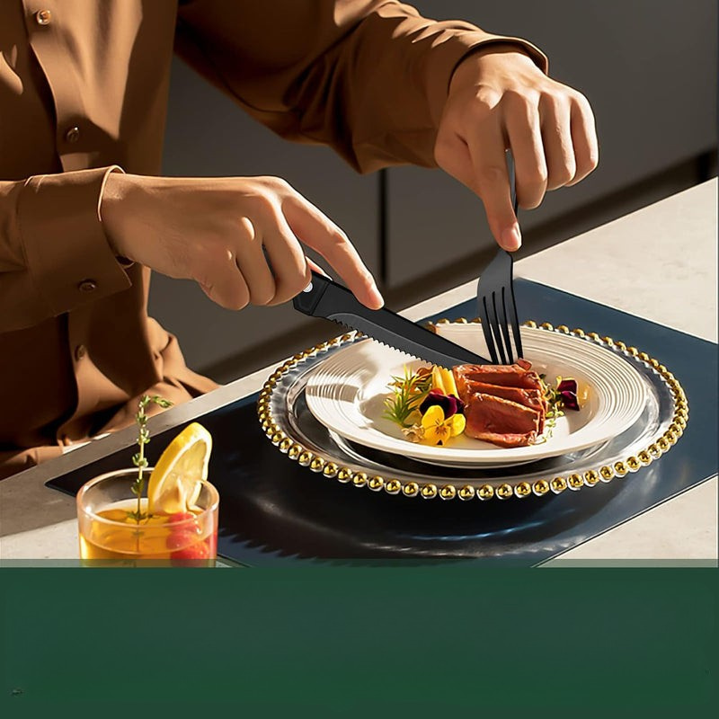 24-teiliges schwarzes Edelstahl-Besteckset für 4 Personen – Modernes Design, spülmaschinenfest