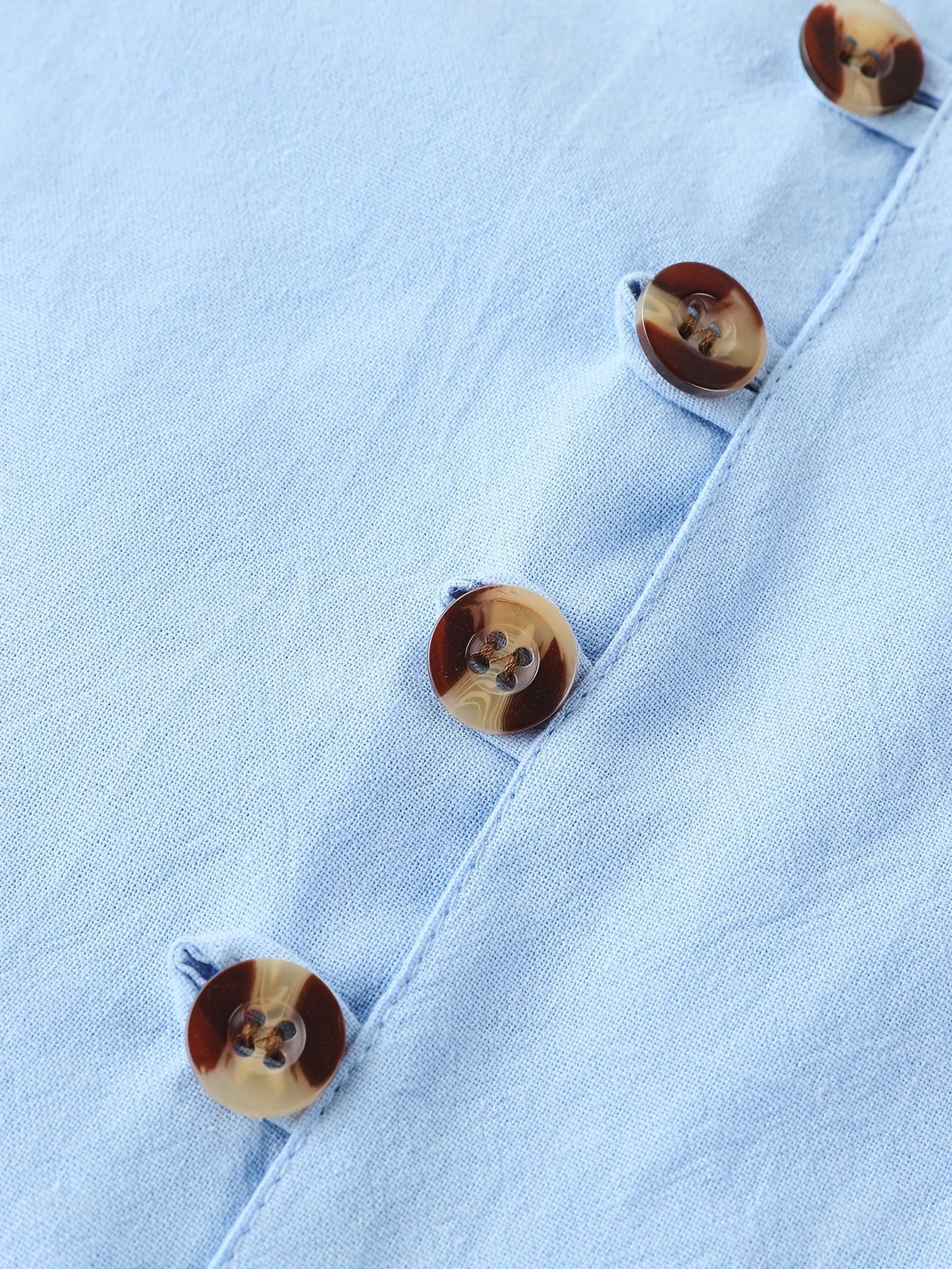Raffinierte Knopfdetails: Das Hemd verfügt über einen Stehkragen und ein einzigartiges Knopf Gestaltung, das Ihrem Strand-oder Resort-Outfit einen Hauch von Eleganz verleiht. Diese Elemente werten den Gesamtstil auf und machen ihn für gehobenere Veranstaltungen am Strand geeignet.