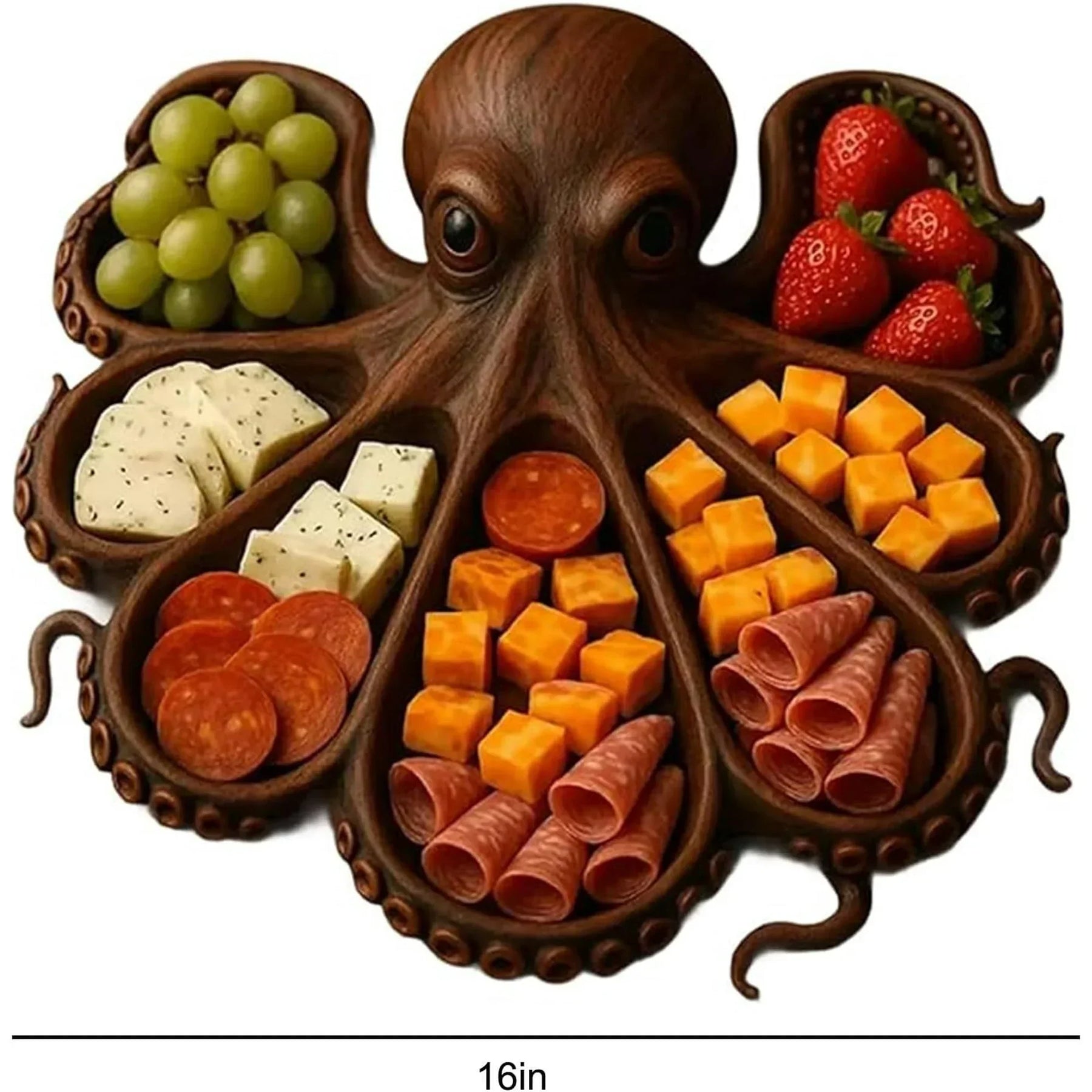 Lass den Zauber des Ozeans zum Mittelpunkt werden – mit einem Stück, das von Küstengeschichten und raffiniertem Geschmack erzählt. Dies ist nicht einfach nur ein Servierbrett, sondern eine faszinierende Verbindung aus Kunst und Funktionalität. Entworfen, um Gespräche und Bewunderung zu entfachen, verwandelt es deine Essenspräsentation in ein echtes Erlebnis. Ob du einen gemütlichen Abend oder eine lebhafte Party veranstaltest, dieses Brett überzeugt durch Stil und Substanz mit müheloser Eleganz. Handgefertigt mit liebevoller Detailarbeit und einem verspielten Oktopus-Design, bringt es einen Hauch von maritimer Magie auf deinen Tisch.