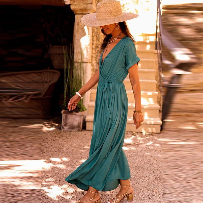 Rachel – Kurzärmeliges V-Ausschnitt Kleid für Damen