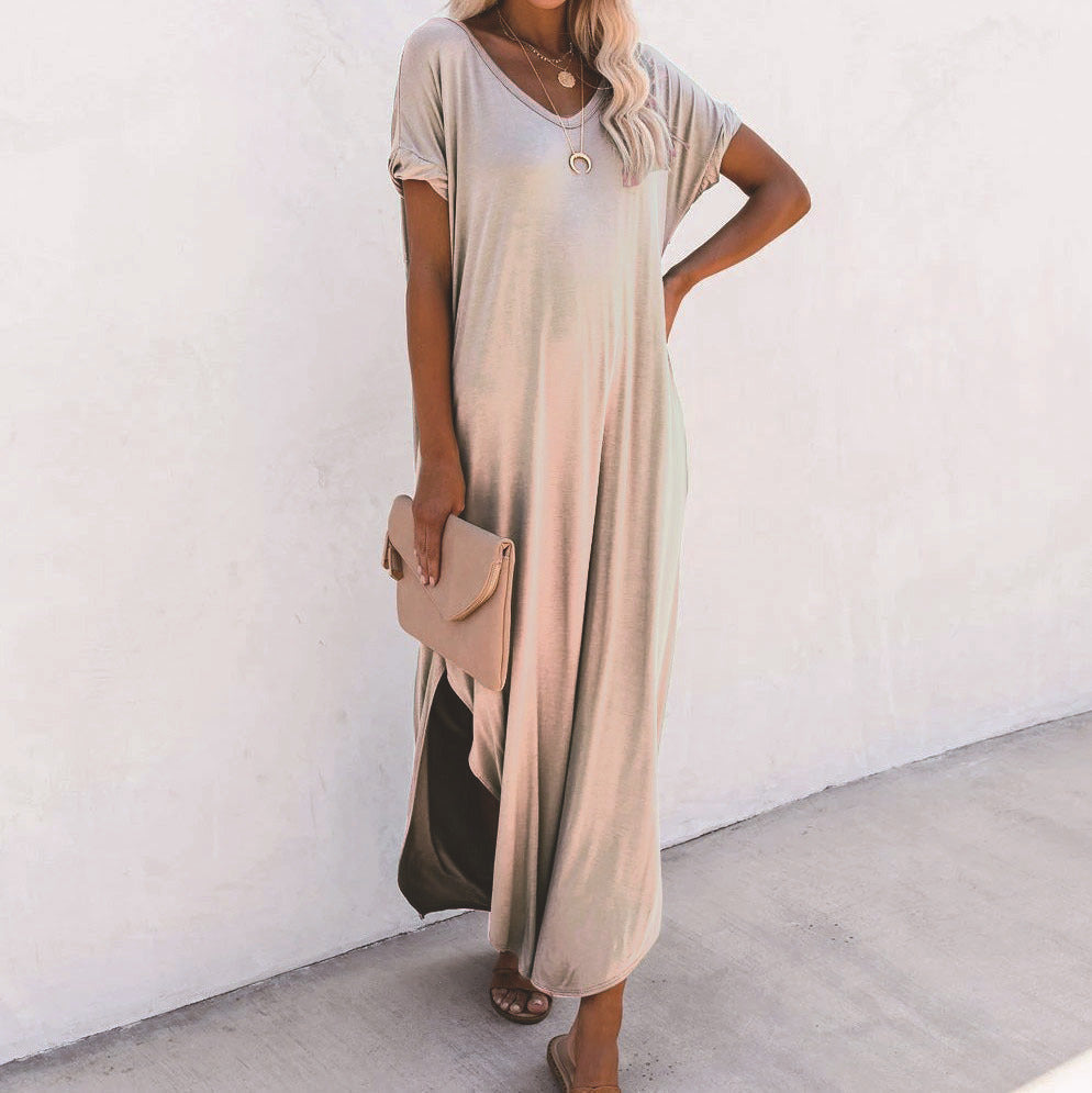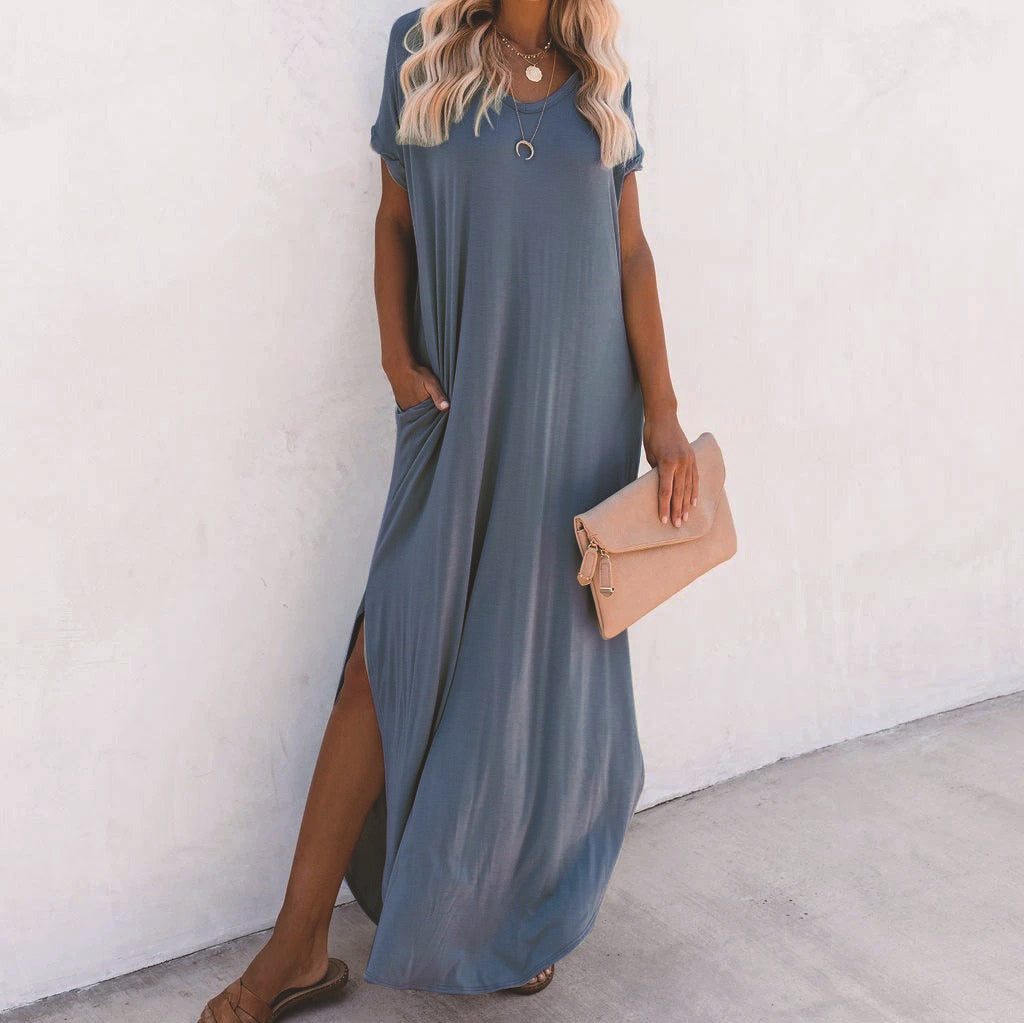 Rachel – Langes Kleid aus Baumwolle mit Taschen