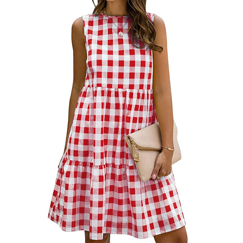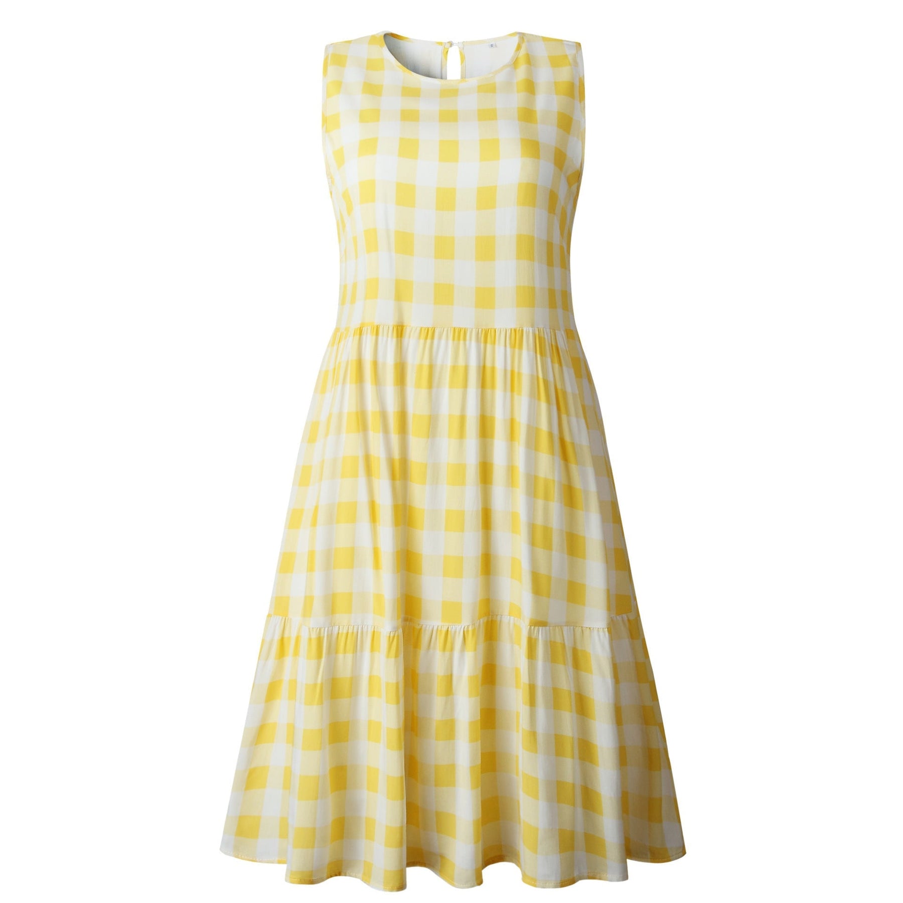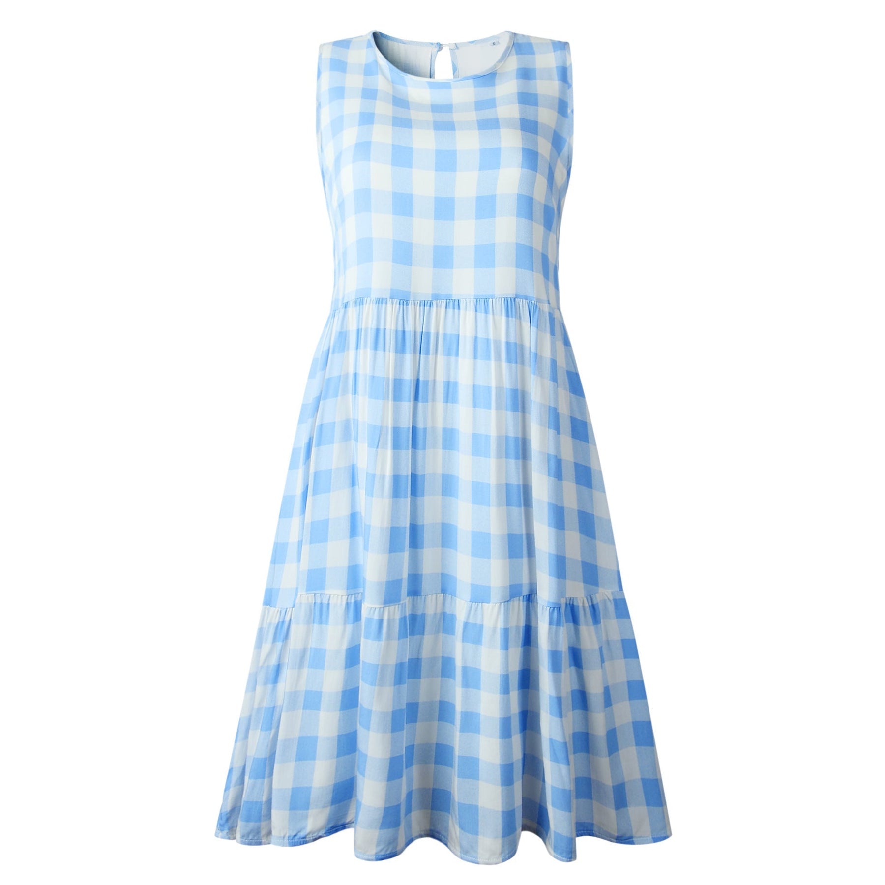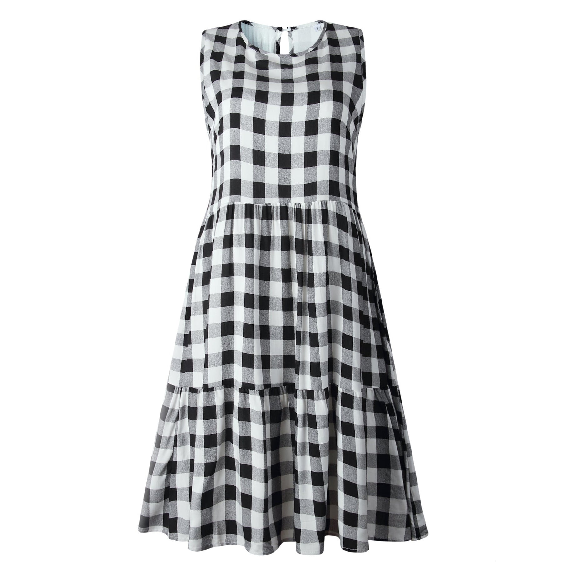 Ruby – Kurzes, ärmelloses A-Linien-Kleid mit lockerer Taille in Schwarz mit Karomuster
