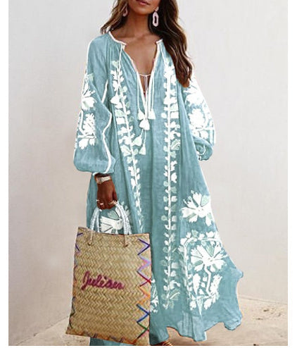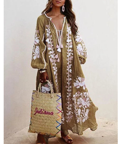 Ruth – Weit geschnittenes Midi-Kleid mit V-Ausschnitt und Druck