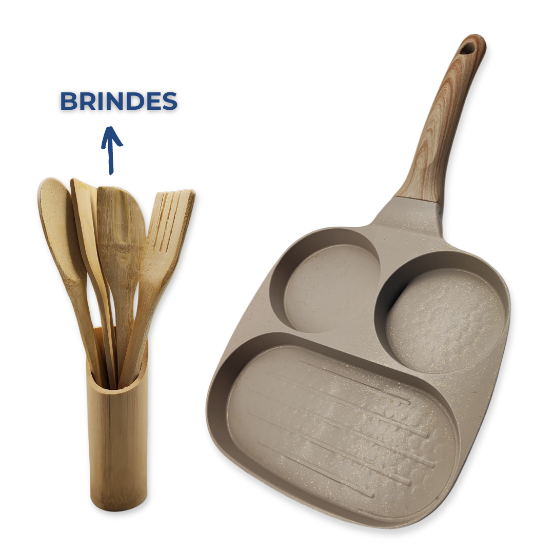 Erleben Sie die perfekte Kombination aus Komfort, Vielseitigkeit und gesundem Kochen mit der 3‑in‑1‑Bratpfanne. Mit drei separaten Kochflächen können Sie unterschiedliche Zutaten gleichzeitig zubereiten – ideal für Frühstück, Mittag- oder Abendessen. Dank der hochwertigen Antihaftbeschichtung benötigen Sie kaum Öl, und die Reinigung gelingt im Handumdrehen. Egal ob Eier, Speck, Gemüse oder Fleisch – diese Pfanne macht das Kochen schneller, einfacher und gesünder.
