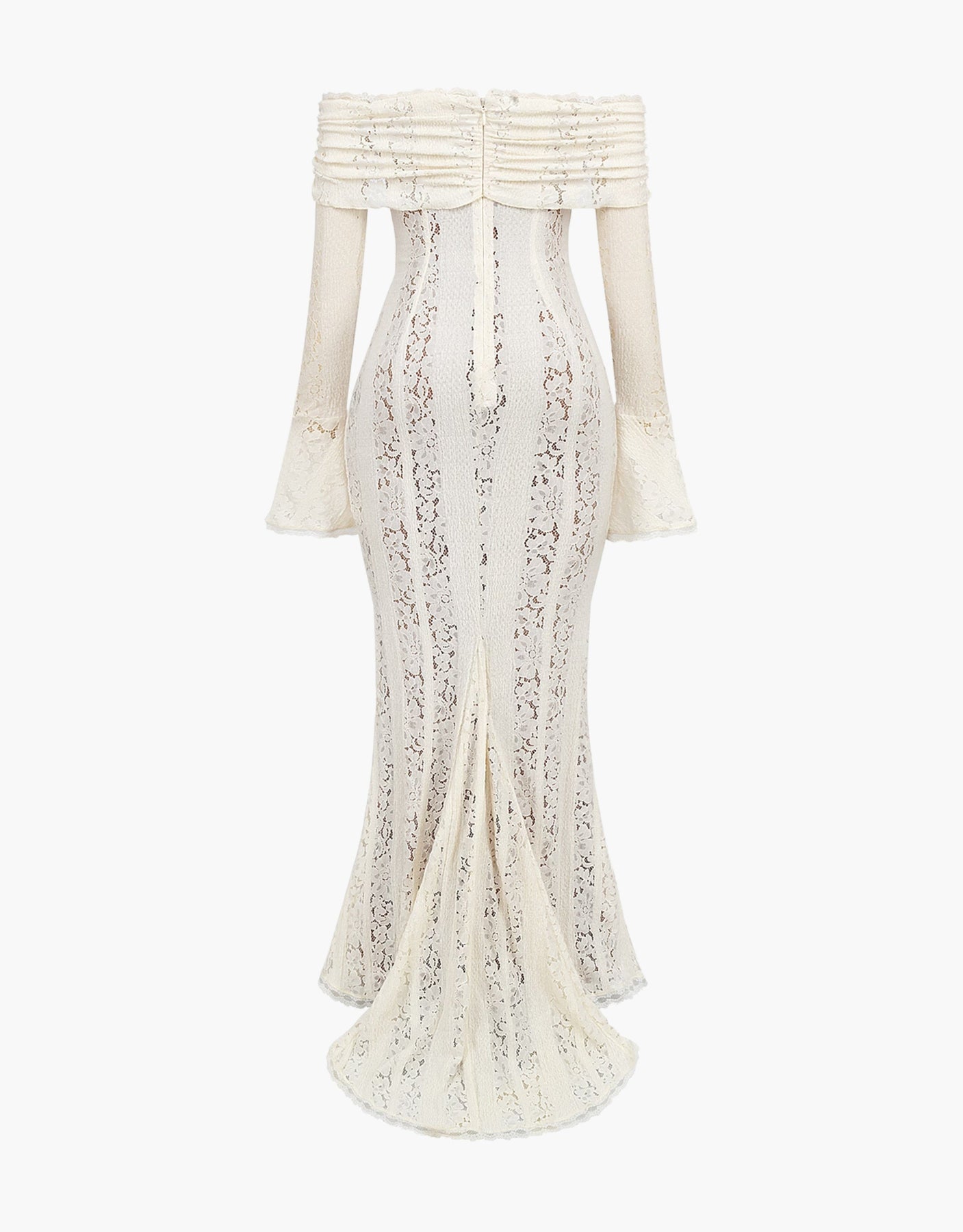 Spitzen-Abendkleid mit Carmen-Ausschnitt und langen Ärmeln für Damen