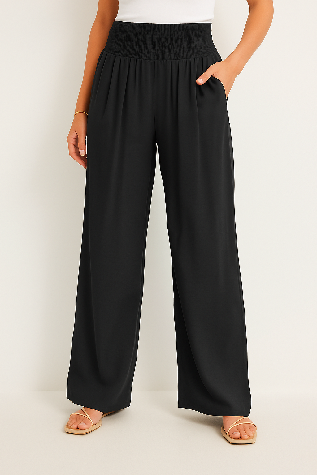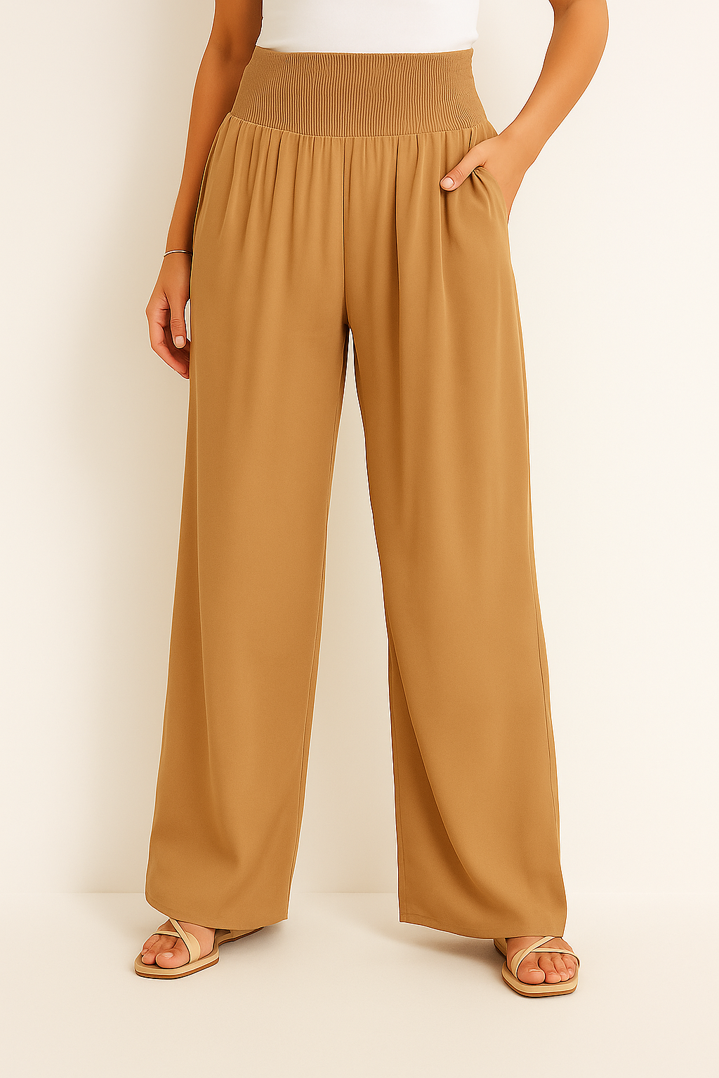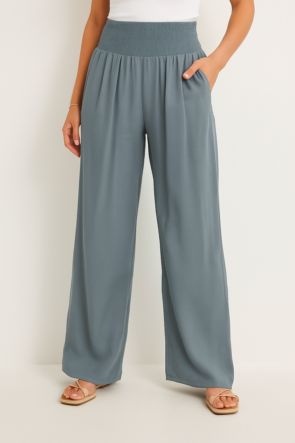• Bequemer Smockbund: Der elastische High Waist Bund formt sanft die Taille und bietet ganztägigen Komfort ohne Einengen.